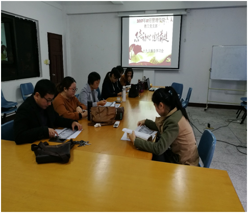 11月27日下午,天天摸天天操教工党支部开展支部活动,学习讨论党的十九大报告,会议由党支部书记李征主持。