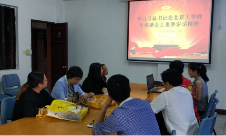 5月11日下午,为深入学习贯彻习近平总书记在北京大学座谈会上的重要讲话精神,落实立德树人根本任务,培养德智体美全面发展的社会主义建设者和接班人,我院教工党支部于曼谷楼206组织开展了以学习习总书记讲话精神为主题的座谈会。座谈会由支部书记李征主持,支部党员都参加了此次座谈会。