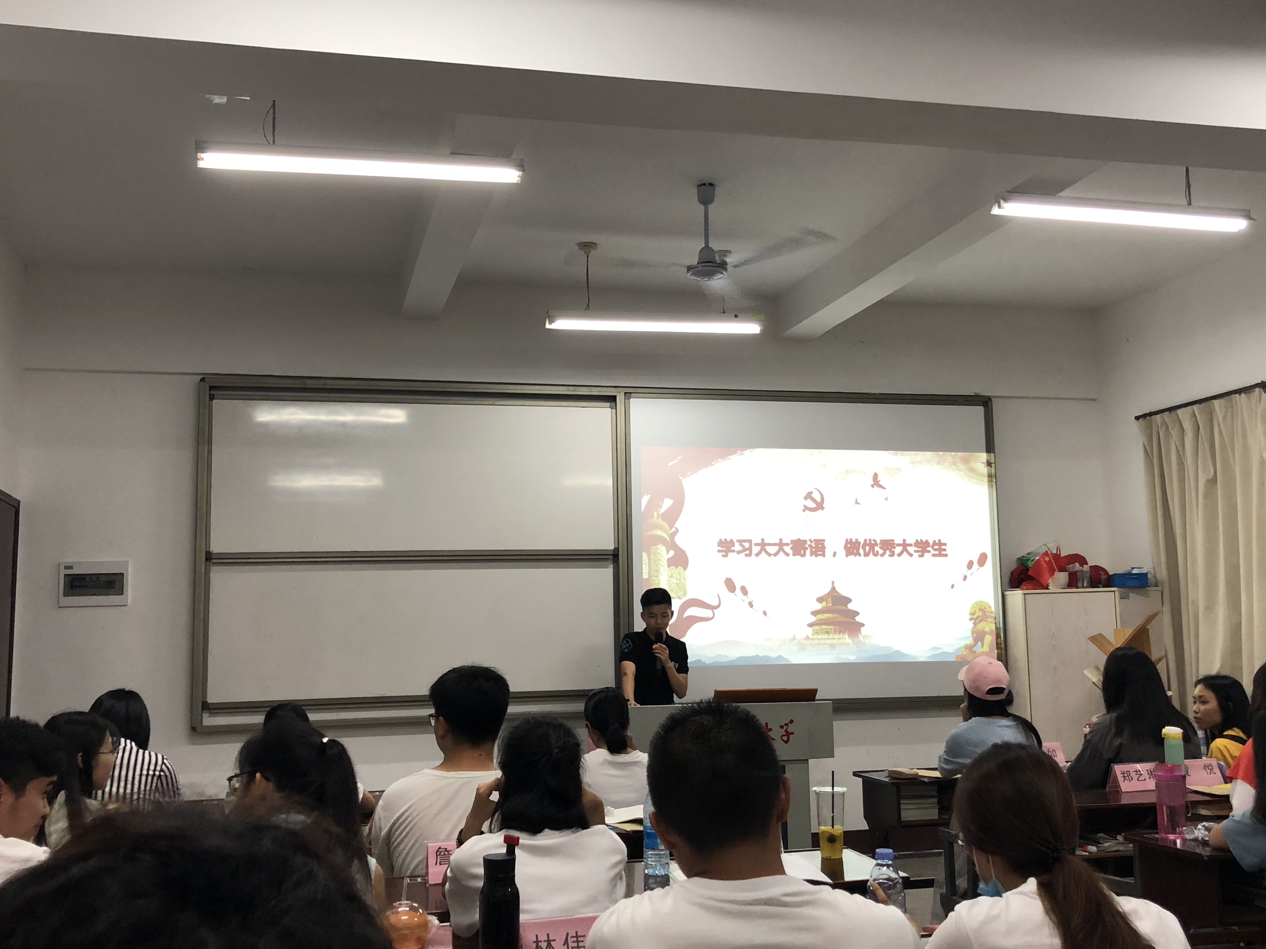 活动现场 本次“党课进教室”学习活动旨在深入学习习近平总书记在北京大学师生座谈会上的重要讲话精神,激励学生党员弘扬“五四”精神,为实现中华民族伟大复兴的中国梦而砥砺前行。(王小梅、王佳黎/文 王小梅/图)
