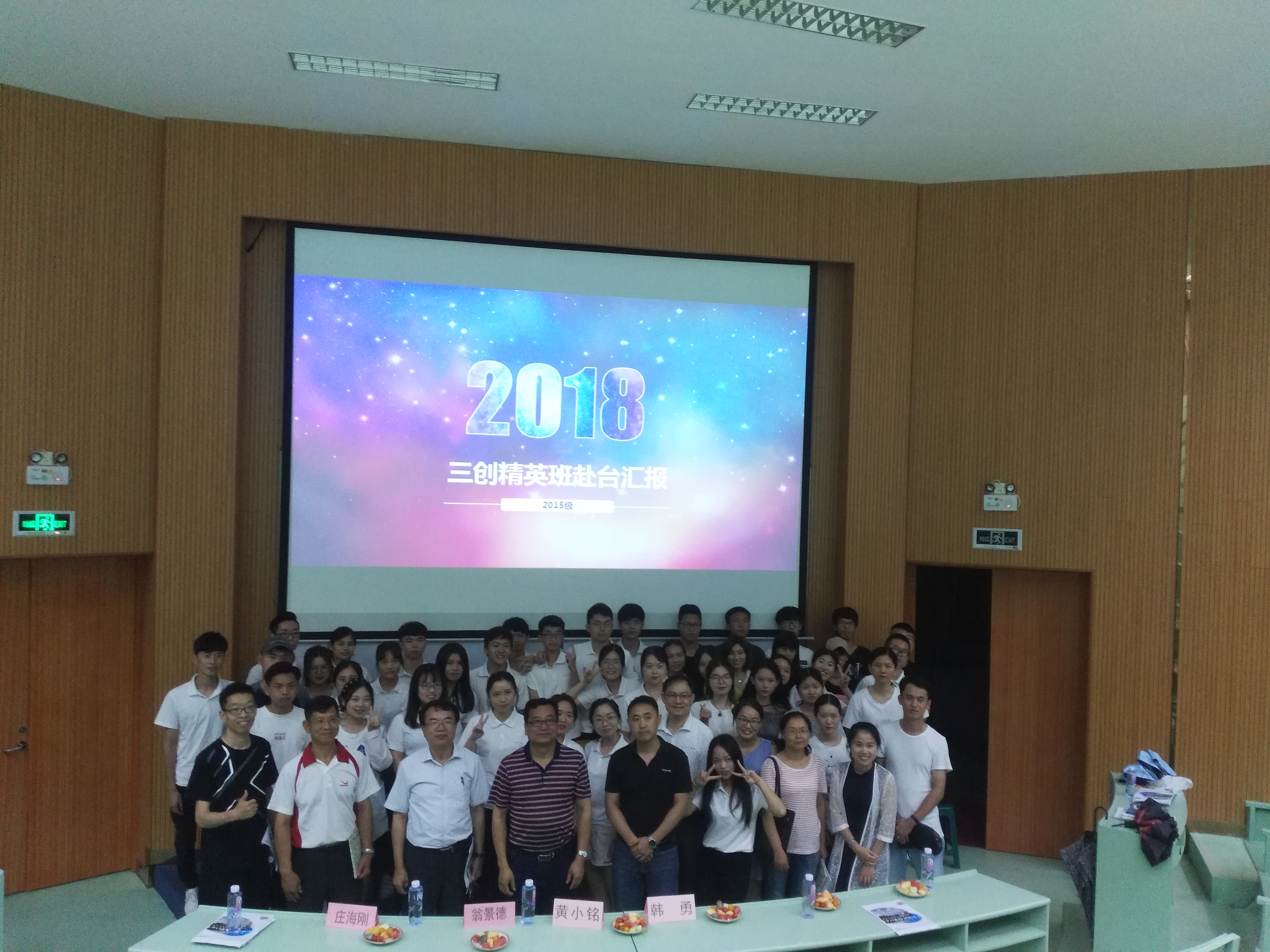 5月30日下午,我院2015级三创精英班在第一教学区和昌楼乐之讲堂召开赴台汇报会。副校长黄小铭,我院院长翁景德、副院长庄海刚,国际合作与交流处韩勇处长,我院各系老师、辅导员及16级全体学生参加本次汇报会。
