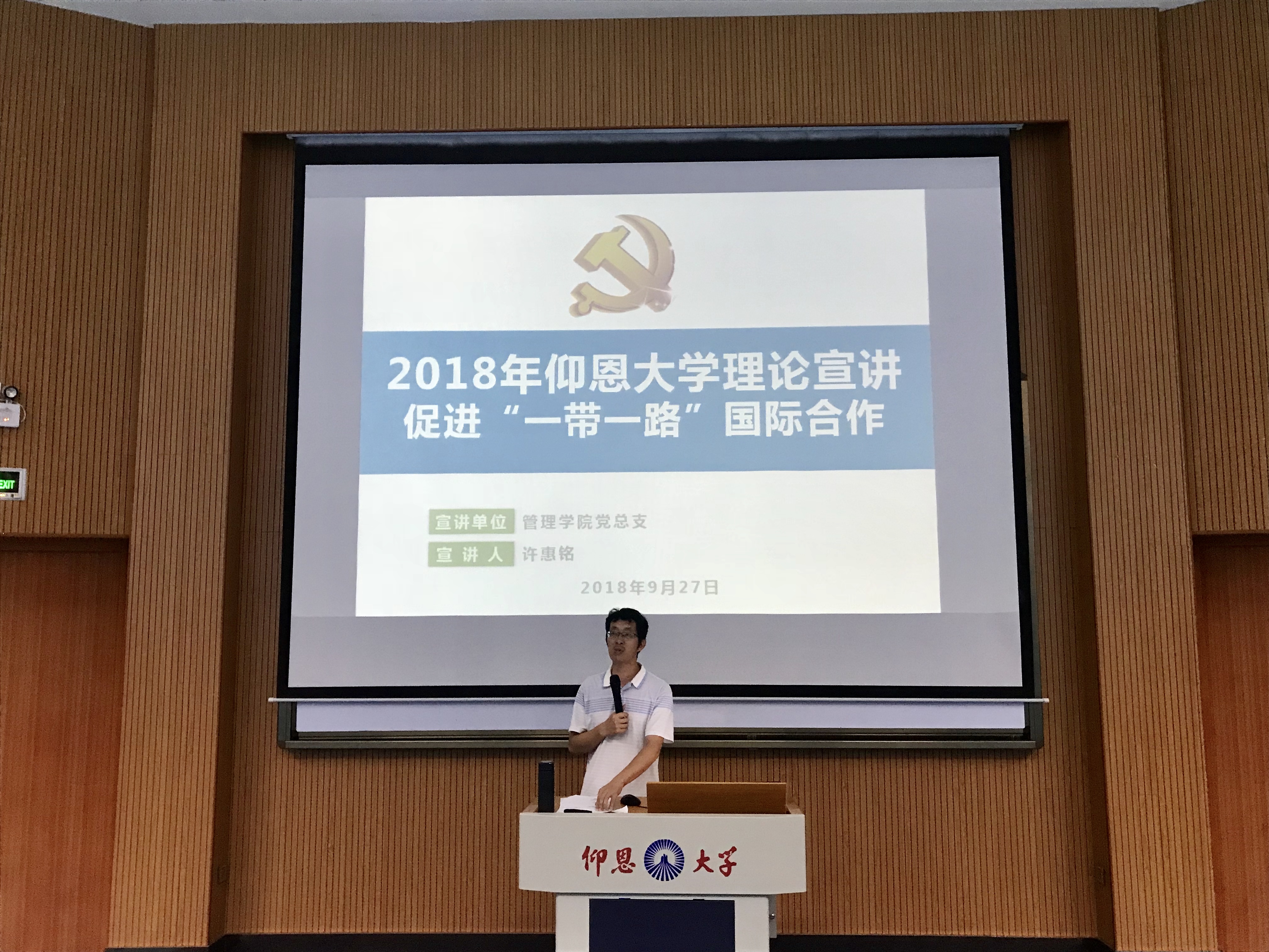 9月27日下午,我院在第一教学区和昌教学楼求是讲堂开展了以《促进“一带一路”国际合作》为主题的理论宣讲活动。天天摸天天操党总支书记兼常务副院长许惠铭为全院师生党员及入党积极分子作主题宣讲。