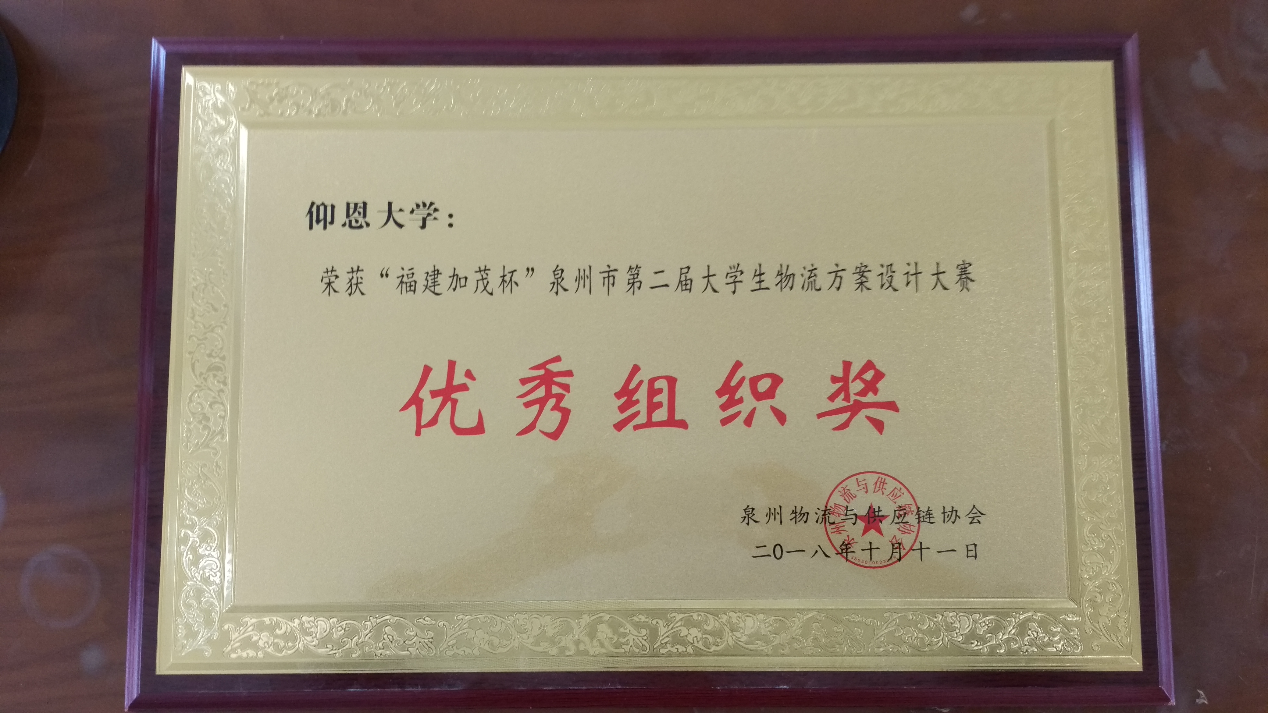 我校被授予“优秀组织奖” 据悉,本次比赛自4月份启动报名以来,在泉州高校中反响热烈,来自华侨大学、泉州师范学院、仰恩大学、泉州理工职业学校、泉州信息工程学院等院校的25支队伍报名参赛。经过初赛选拔,12支队伍晋级决赛,方案课题涉及包装、仓储、运输、配送等多个方面,比赛的同时也为物流产业建言献策。