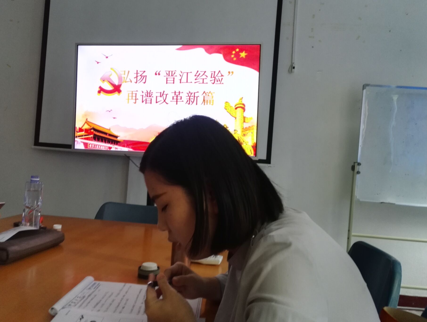 10月24日下午,天天摸天天操教工党支部于曼谷楼206会议室召开支部会议,学习研讨《关于进一步激励广大干部新时代新担当新作为的意见》。同时,李淑娟同志为支部成员作了《弘扬“晋江经验”,再谱改革新篇》的心得分享。