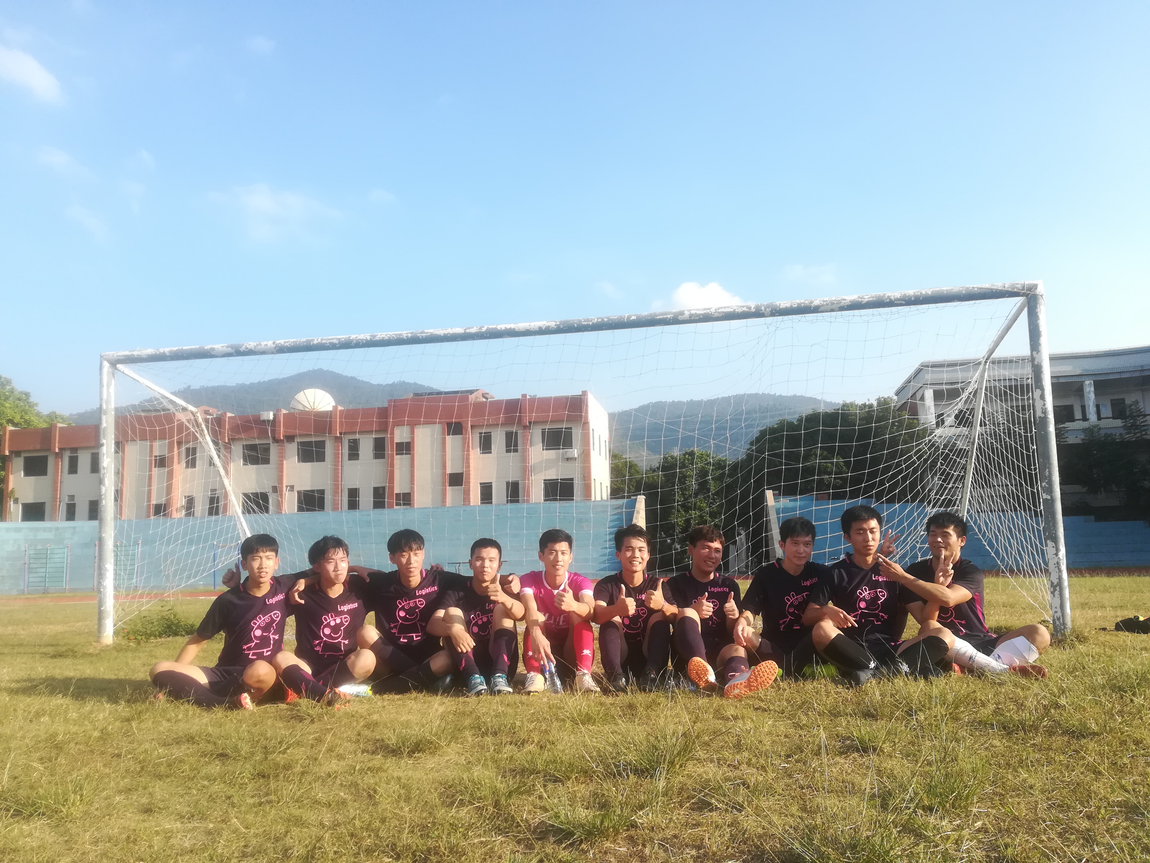 物流管理系代表队合照 整场比赛打得十分火热,双方的攻势此起彼伏,毫不谦让。双方球员在绿茵场上奋力奔跑,互相对抗时无所畏惧,在足球场上拼尽全力守住脚下每一寸领地。最终物流管理系惜败,斩获第四名。