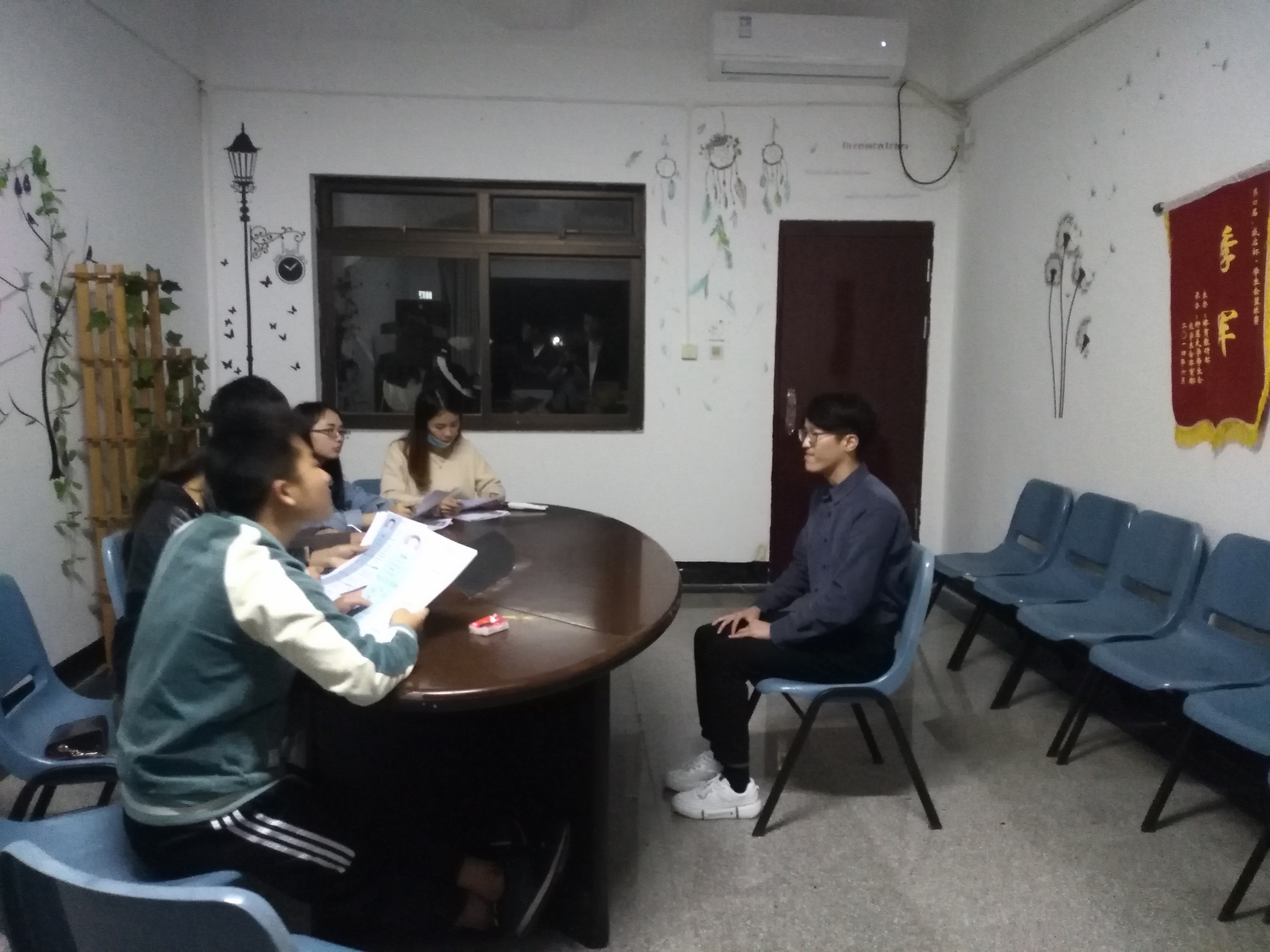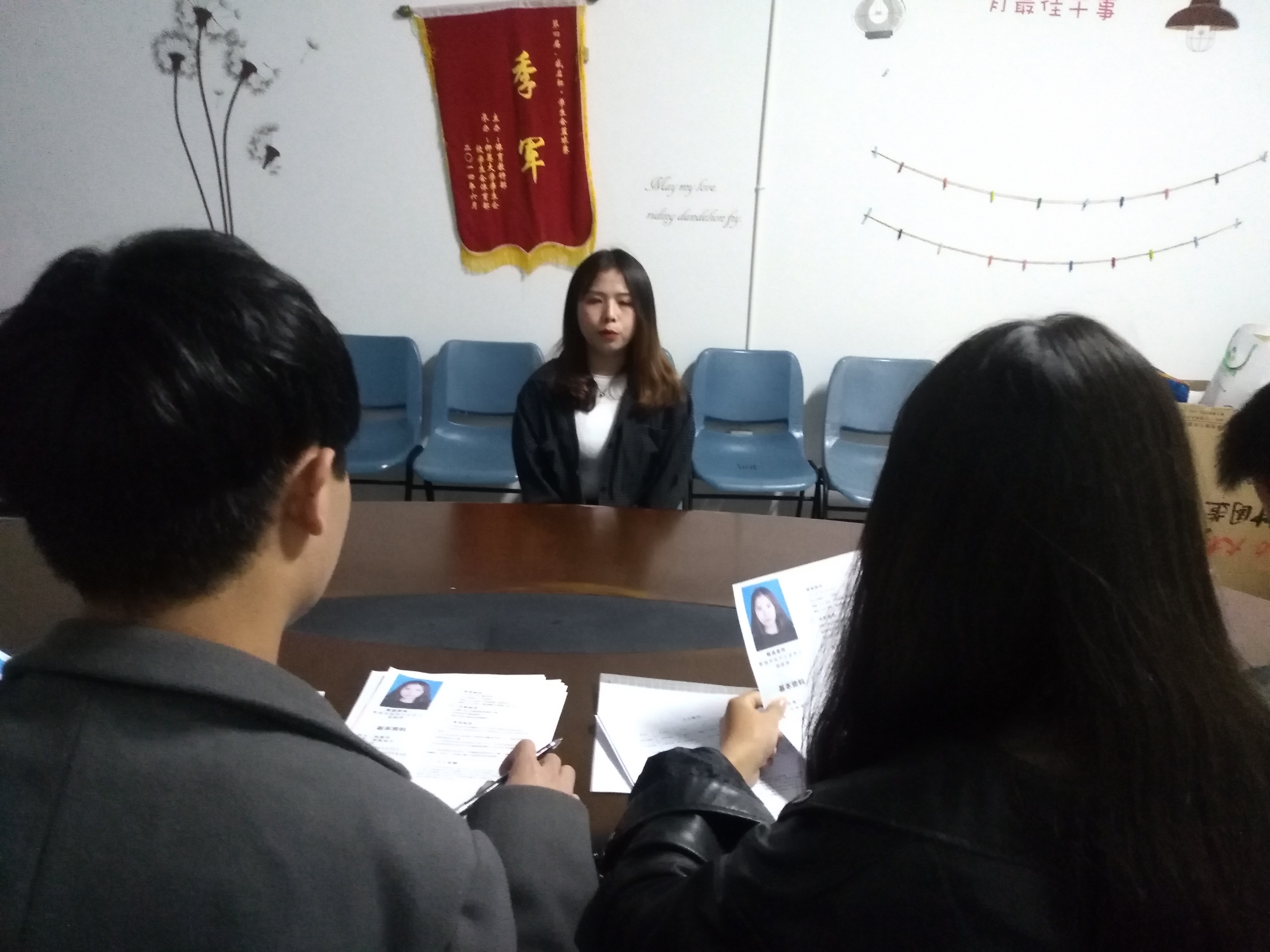 11月29日晚,我院学生会干部换届面试在第一教学区共和楼501院学生会办公室举行。此次面试的评委由第20届和第21届(代理)天天摸天天操学生会主席团组成。