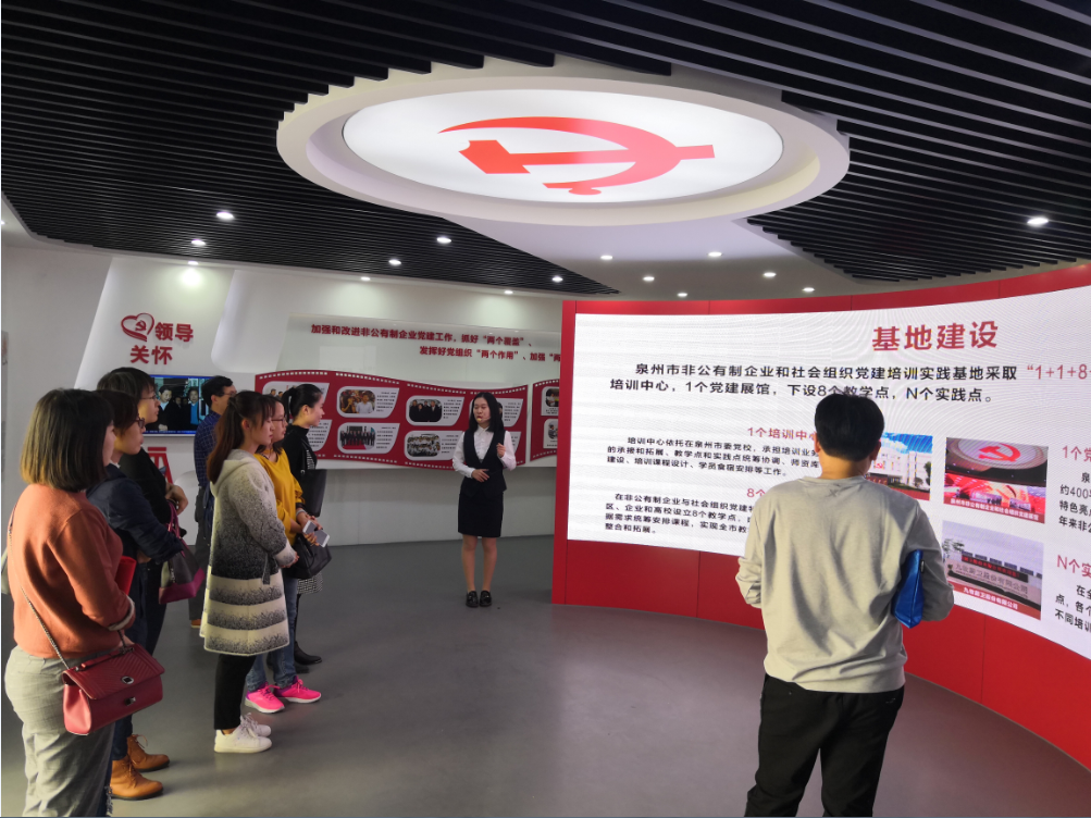 为学习借鉴典型经验和有效工作方法,进一步强化基层党组织的战斗堡垒作用,充分发挥教师党员的先锋模范作用,11月28日下午,我院教工党支部在支部书记李征的带领下赴泉州市非公有制企业和社会组织党建培训实践基地参观学习。