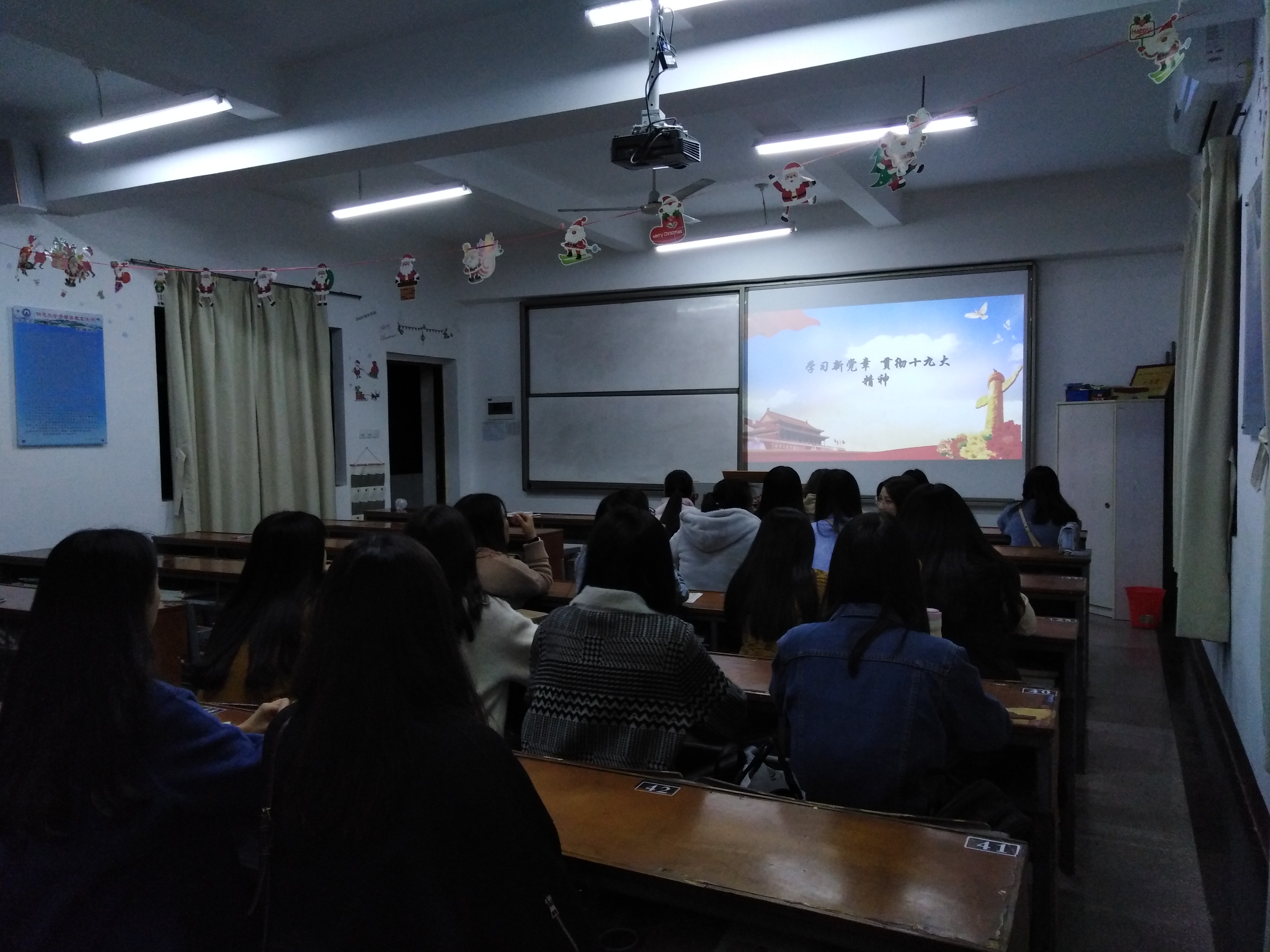 学习现场 通过观看相关视频,党员们详细了解了新党章的新内容,并深入探讨新党章的时代意义,表示要以良好的精神状态推动学习贯彻党的十九大精神不断向纵深开展,并将当前的学习活动与实际学习、工作结合起来。