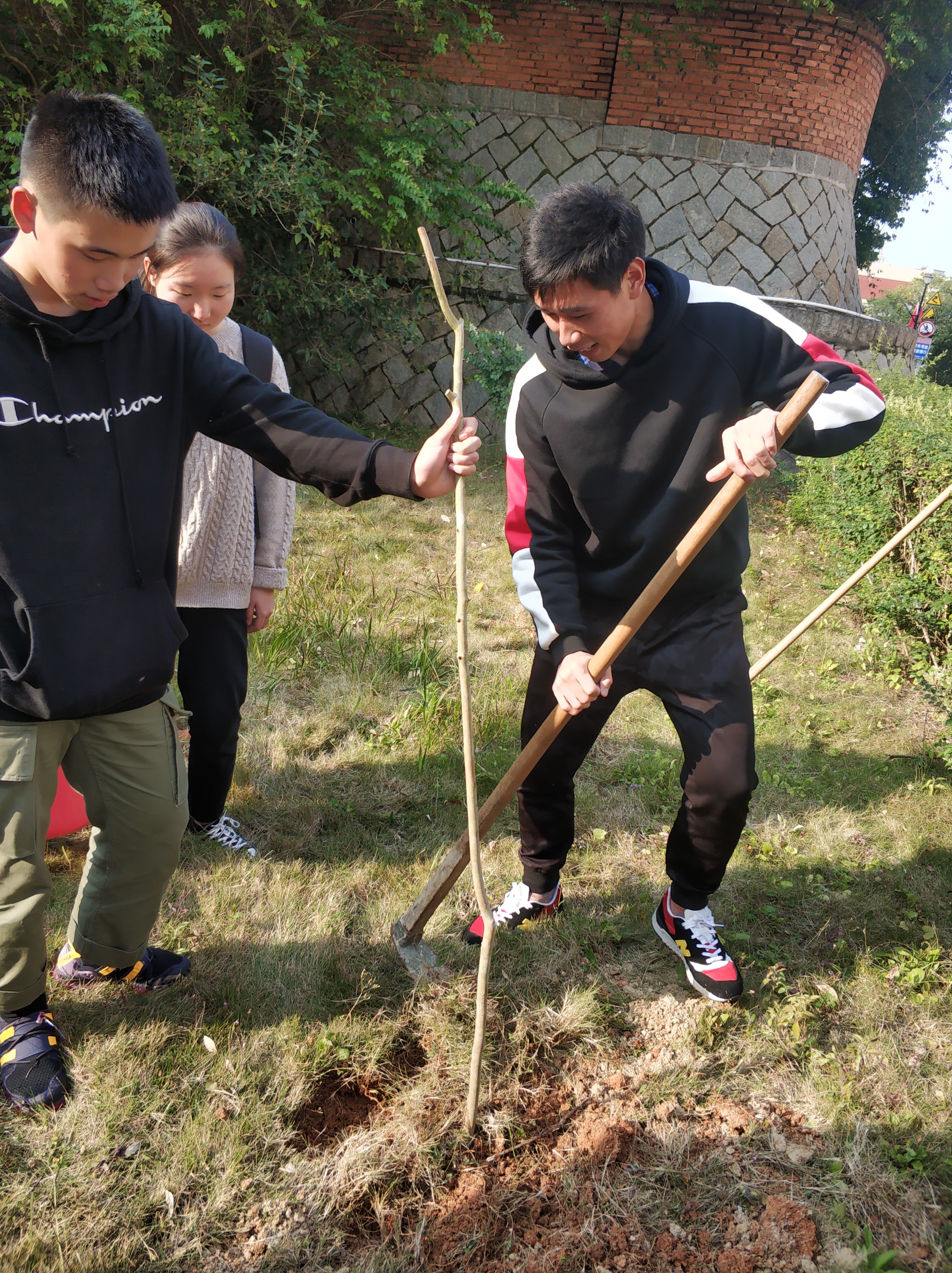 3月11日下午,公共管理系党团学于宏船楼后面的空草坪,开展植树节植树活动。参加活动的有辅导员徐鸿飞老师、党团学主要学生干部、以及各部门学生代表。