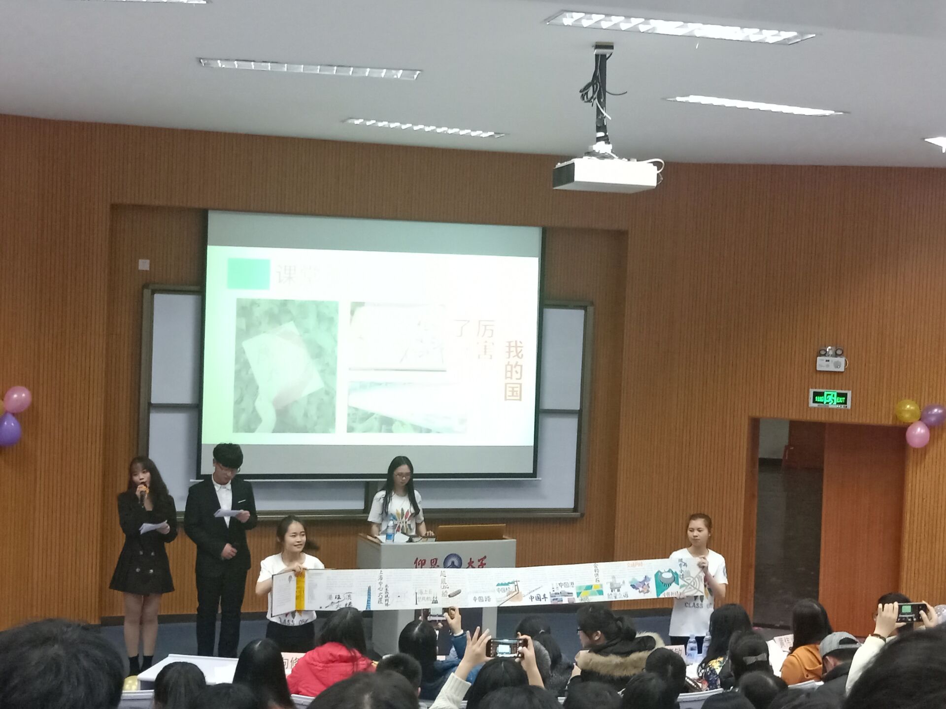 “厉害了,我的国”手绘册展示 在比赛过程中,16行政管理1班以班级介绍切入主题,通过才艺走秀表演、获奖荣誉展示、演唱改编歌曲等多种形式向观众展现了班级的优秀成果。由班级同学制作的“厉害了,我的国”手绘册展示更是将现场气氛推至高潮,获得现场评委和观众的一致好评。经过激烈角逐,16行政管理1班从12支参赛队伍中脱颖而出,摘得一等奖的桂冠。