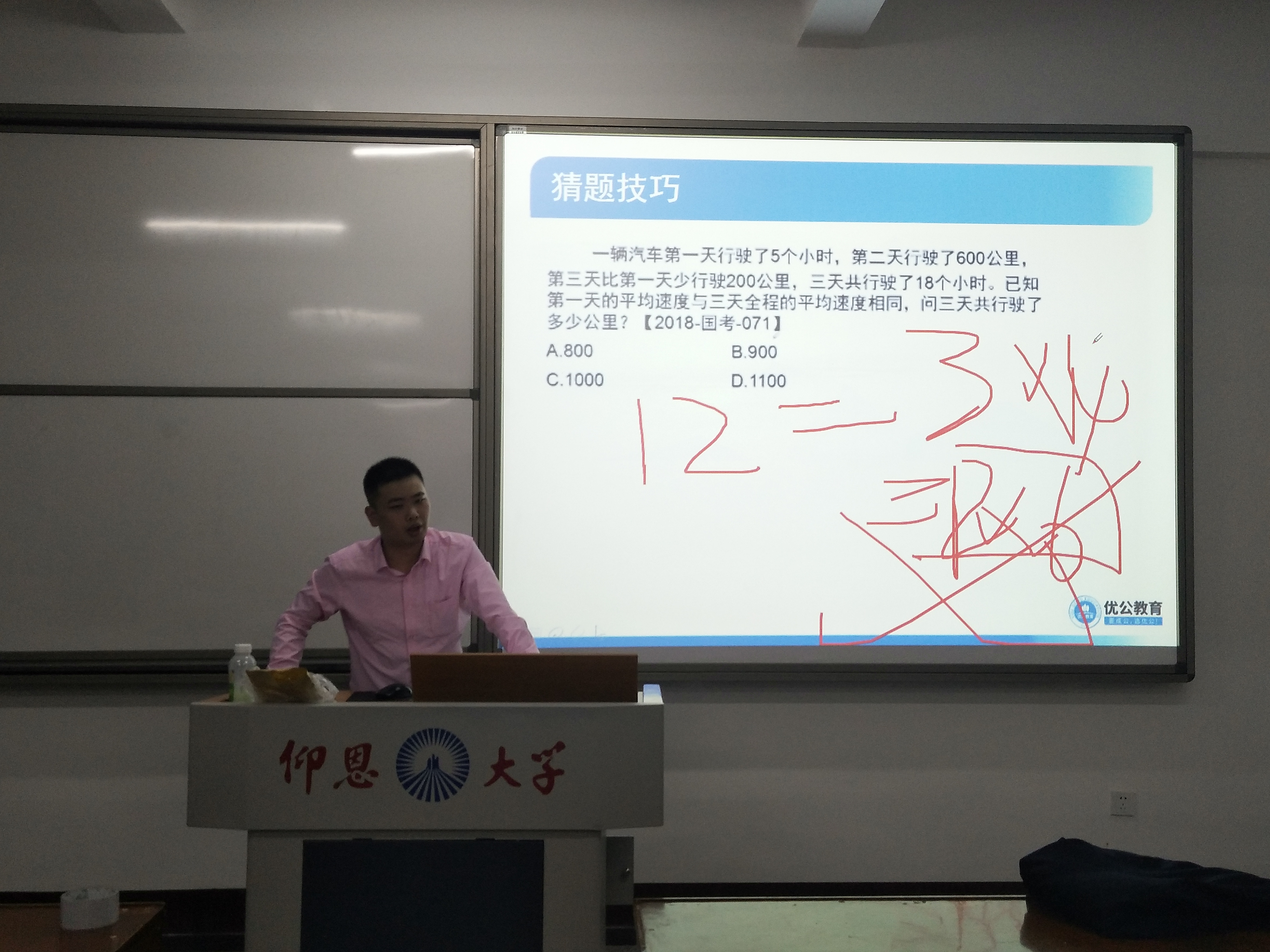 为了加强同学们对公务员考试的了解,提高备考水平,提升考试能力。3月27日晚上,我院团委联合公务员考试名牌机构“优公教育”在第一教学区共和楼205开展公务员考试培训讲座——行测高分备考公开课。