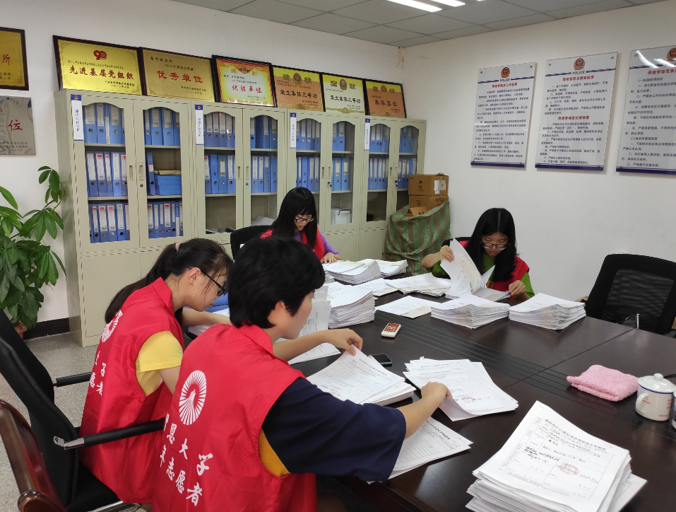 党员同志正在整理材料    学生党员们在马甲交警中队协助人民警察整理资料。在相关工作人员的安排和指导下,大家有条不紊地整理相关材料。在材料整理过程中,同志们体会到警察同志工作的繁琐。活动结束,马甲交警中队相关工作人员肯定了同志们为民服务的行为,同时也赞扬了同志们积极的工作态度。