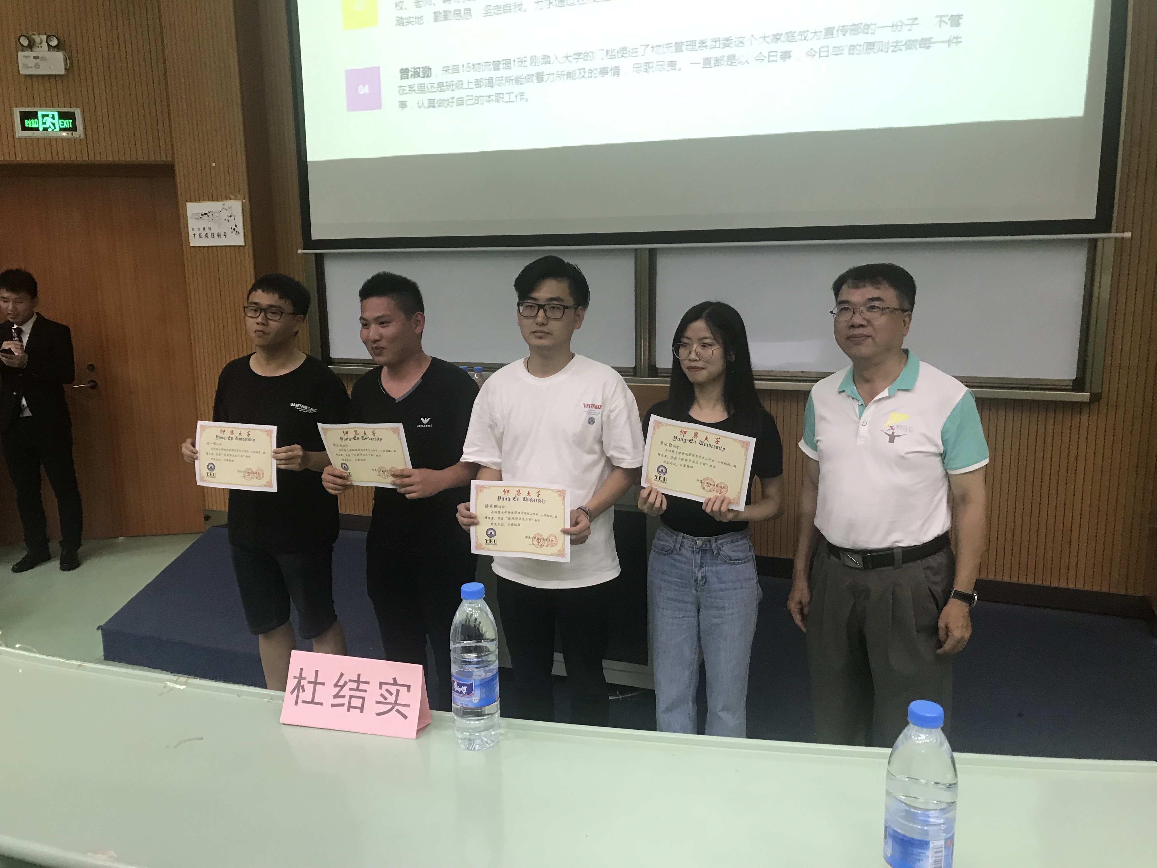 合照 随后是游戏环节,全体师生欢聚一堂,纵情欢笑。活动过程中,学弟学妹们为大四毕业生献上歌曲《再见再见》和《那些花儿》以表达自己的祝福与不舍。一段纪念视频播放完毕,交流会落下了帷幕。在活动的尾声,翁景德院长为活动作总结讲话,他祝贺毕业生大学四年取得的优异成绩并送上了对毕业生的祝福。