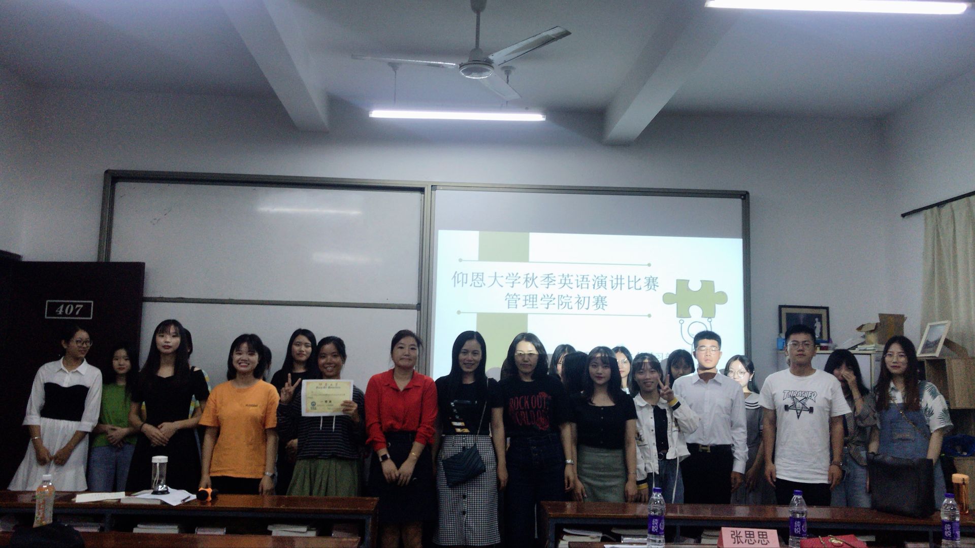 为了更好地提高同学的综合素质,提高学生英语口语表达能力,活跃校园文化氛围,10月10日晚,我院学生会于第一教学区共和楼407开展仰恩大学秋季英语演讲比赛天天摸天天操初赛。本次比赛特邀外国语学院张思思、陈苗苗、岳跃金三位老师担任评委。