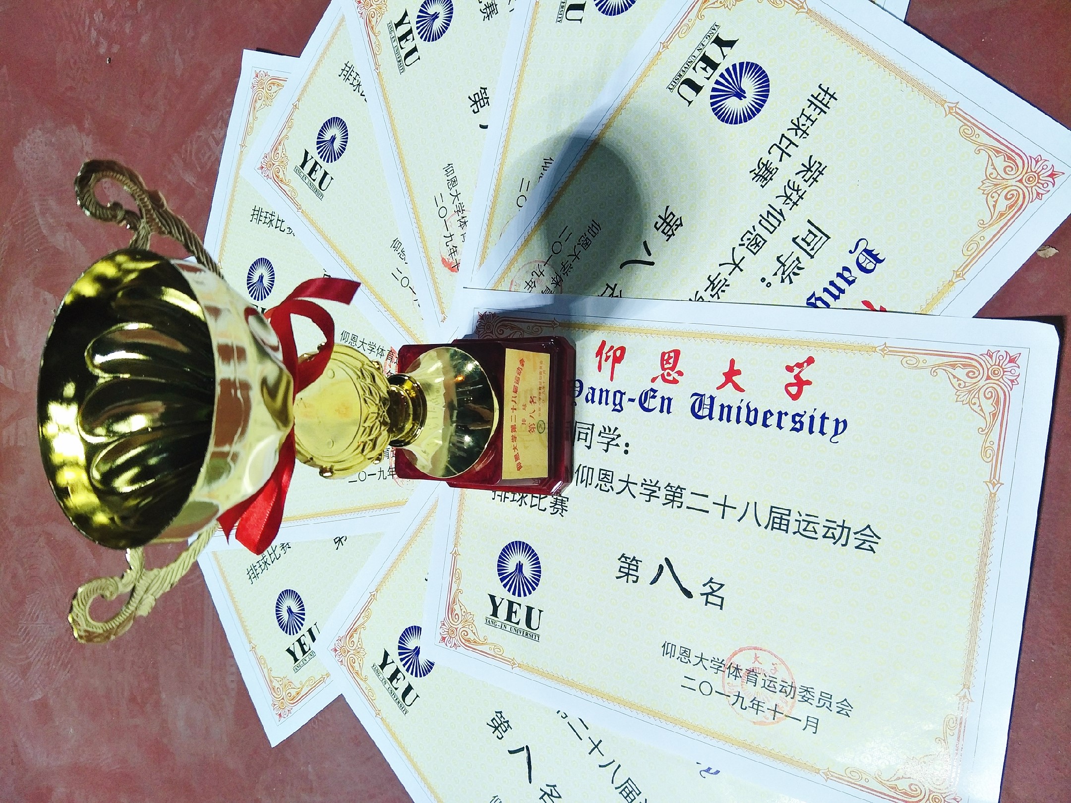 11月4日晚,仰恩大学第28届运动会排球比赛颁奖仪式于第一教学区男生宿舍操场正式举行。通过激烈的竞争,市场营销系代表队在比赛中取得第八名的好成绩。