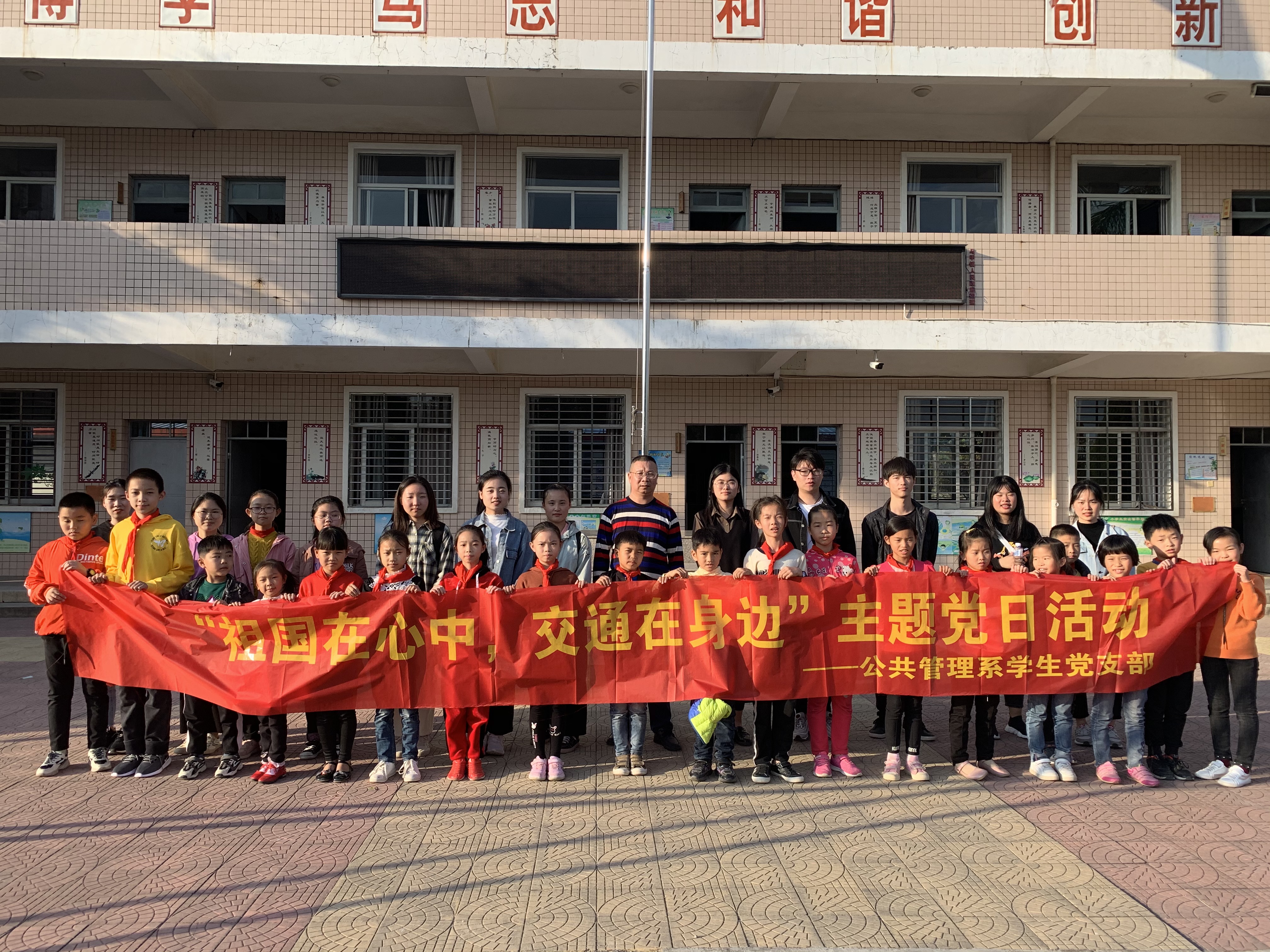 11月27日下午,公共管理系学生党支部组织支部成员于马甲镇彭殊小学开展“祖国在心中,交通在身边”主题党日活动,彭殊小学全体师生共同参与其中。