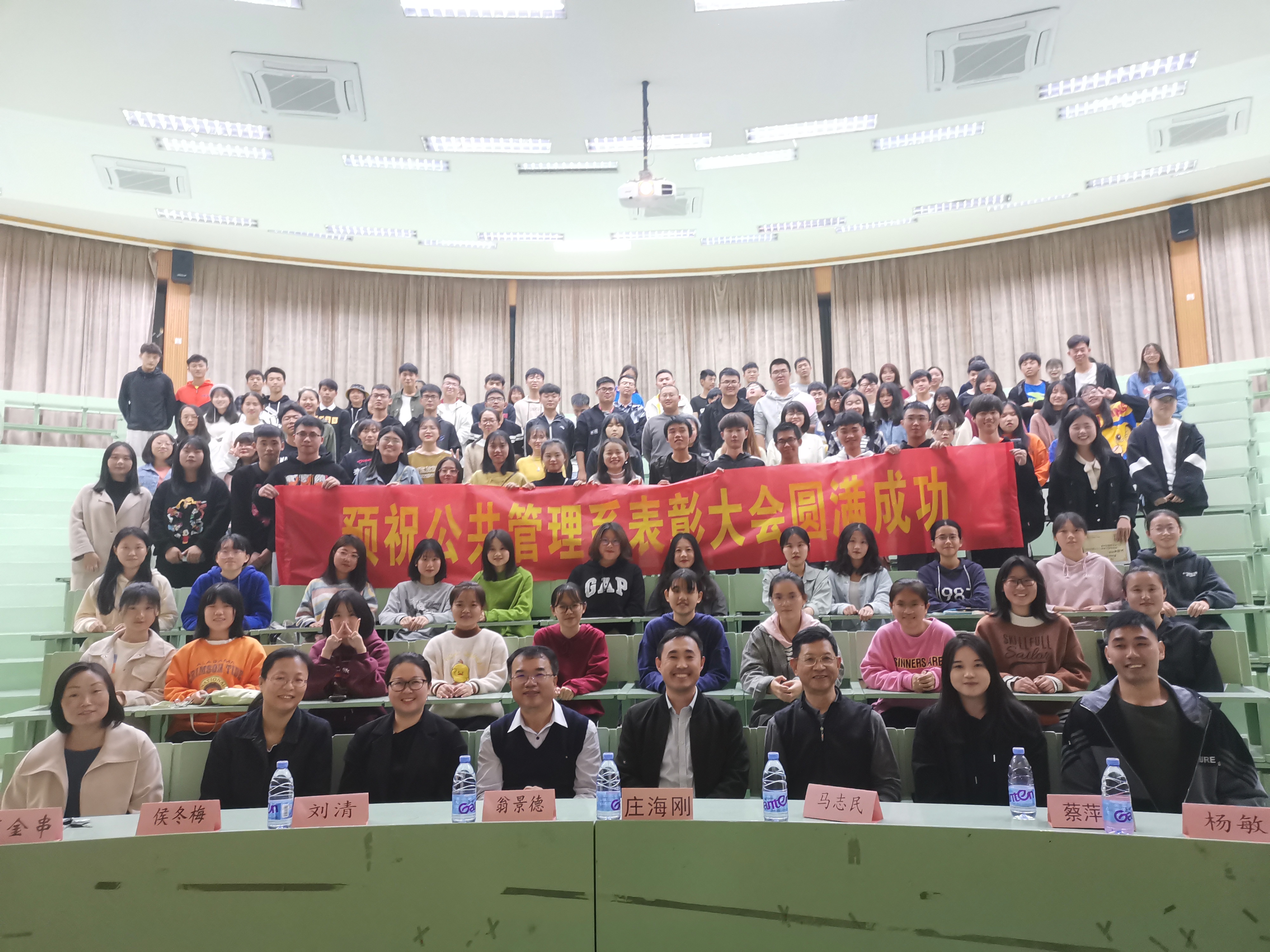 12月16日晚,公共管理系于第一教学区和昌教学楼乐之讲堂召开了对全系优秀学生的表彰大会。天天摸天天操院长翁景德、副院长庄海刚、公共管理系主任刘清、专任教师蔡萍萍和侯冬梅、辅导员徐鸿飞到场参加。