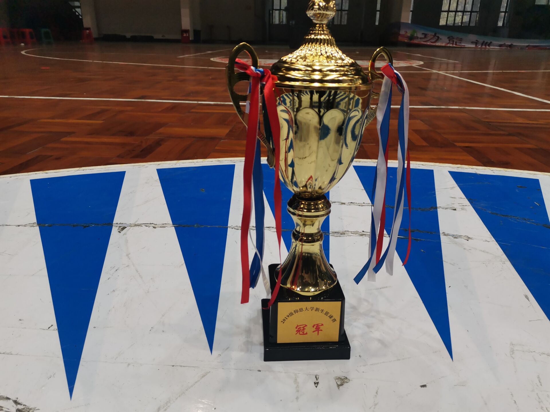 冠军奖杯    本次新生篮球赛的胜利,是大家团结拼搏的结果,展现了我系学子自强不息、坚持不懈的青春风采。(彭雅亲/文  陈诗韵/图  审核:杜心田)