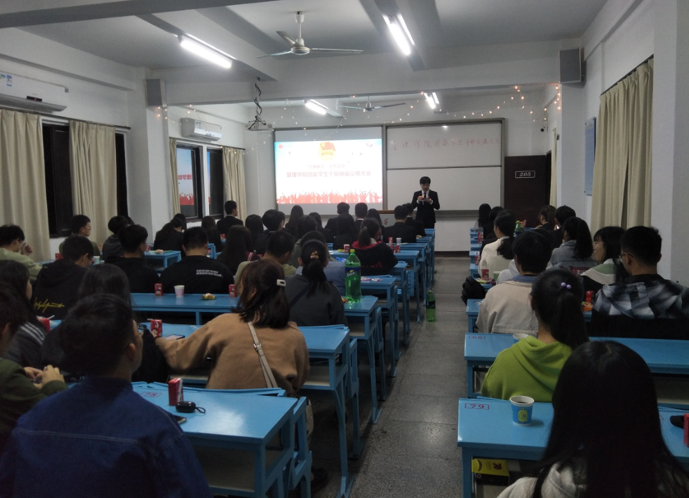 1月4日晚,我院团委第二十二届学生干部换届交接大会暨全体干部干事见面会在第一教学区吉龙楼205顺利举行。学院团委第二十一届干部、第二十二届代理干部以及全体干事到场参加。