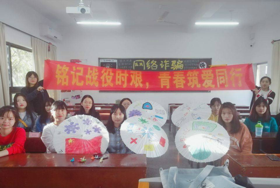 油纸伞创作合影    团员们通过此活动在油纸伞上绘制新型冠状病毒的模样,祈愿病毒远遁。油纸伞上国旗与抗疫的逆行者表示着对国家强大与逆行者英勇的赞美,歌颂着疫情期间人民群众的团结一心,众志成城。此次活动唤醒了当代青年人的文化传承意识,同时增强了团员们的文化自信和制度自信。