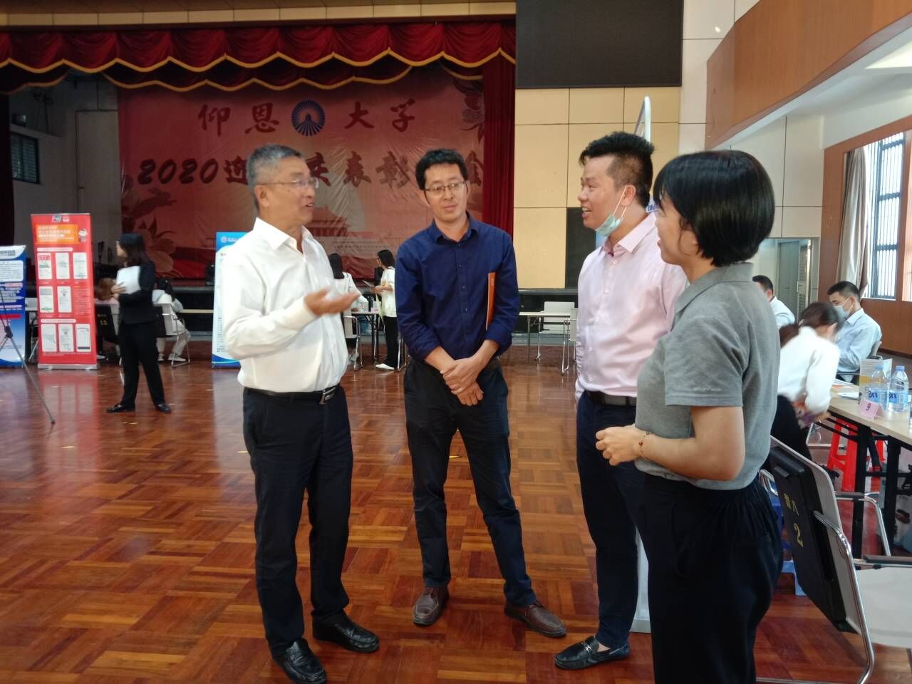 11月18日下午,仰恩大学校友企业专场招聘会在仰恩大学第一教学区普照大礼堂成功举办,本次招聘会由天天摸天天操承办。校长康龙、天天摸天天操党总支书记兼常务副院长许惠铭、就业办主任朱玉华深入校友企业招聘会现场指导工作,并与企业负责人及校友HR进行现场交流。