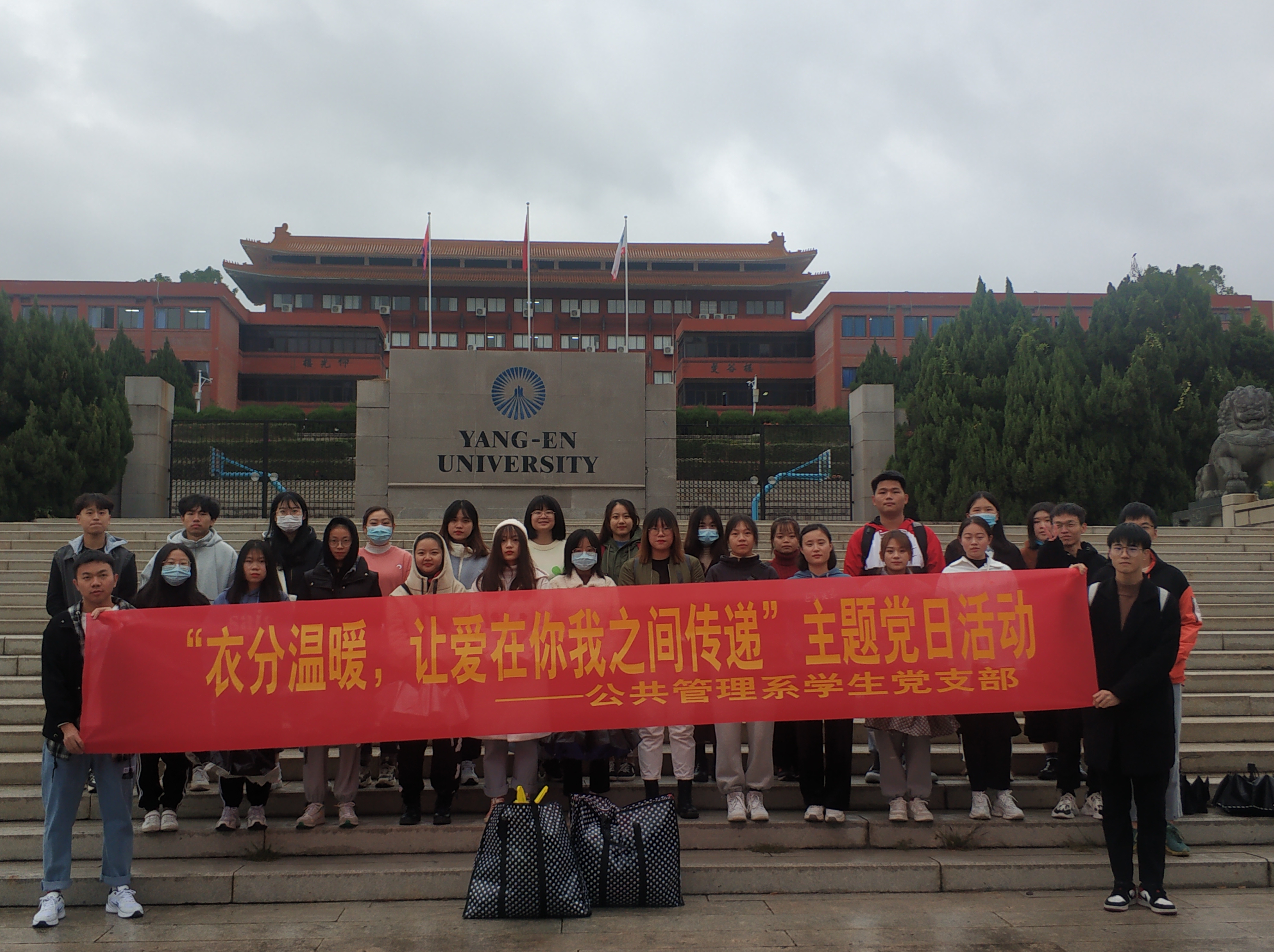 12月16日下午四点,公共管理系学生党支部在仰恩大学第一教学区宿舍楼开展“衣分温暖,让爱在你我之间传递”主题党日活动。