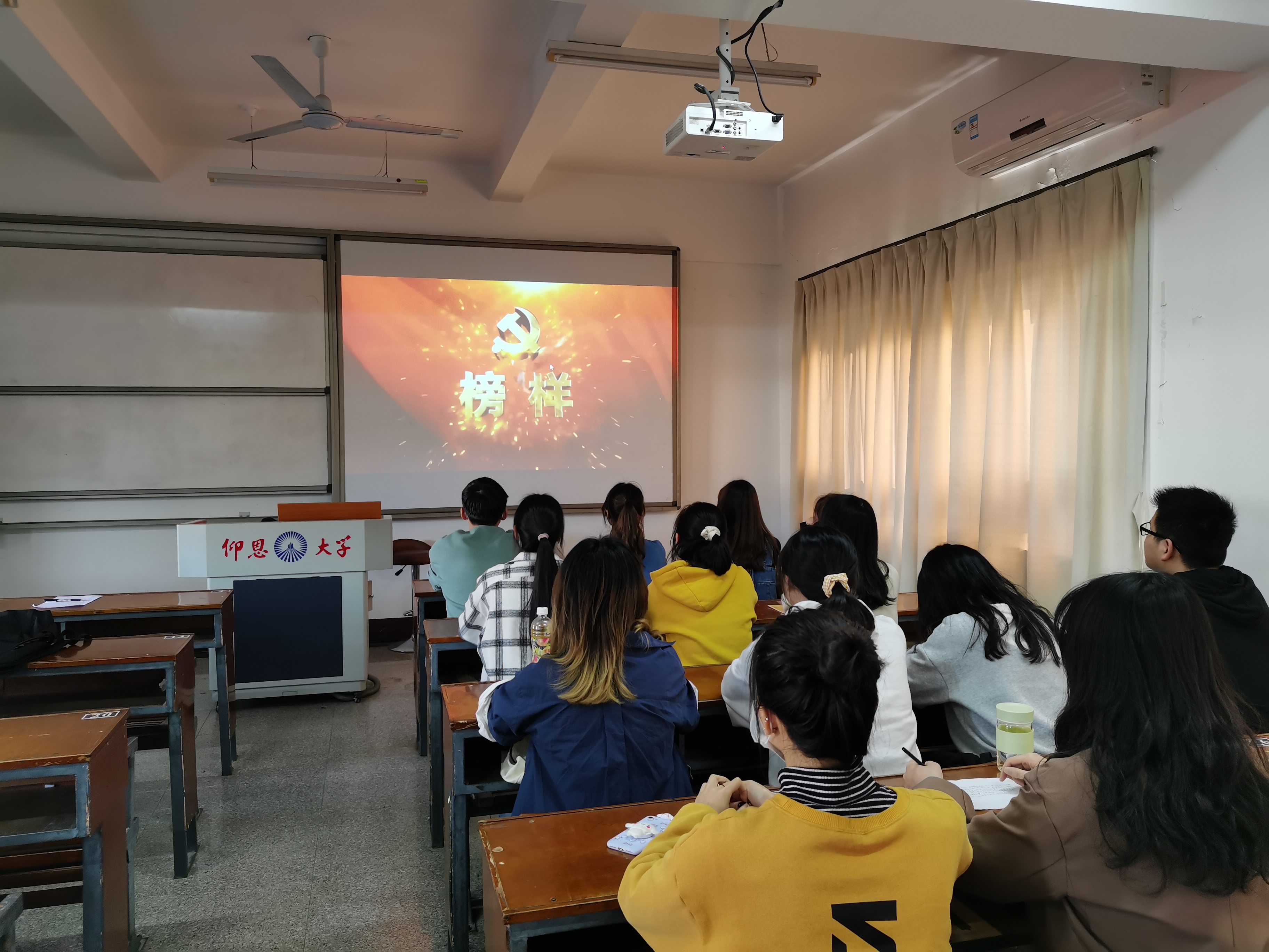 为深入学习贯彻习近平新时代中国特色社会主义思想,充分发挥先进典型示范引领作用,巩固深化“不忘初心、牢记使命”主题教育成果,天天摸天天操工商管理系学生党支部于2021年3月26日在仰恩大学第一教学区共和楼203开展榜样五学习分享会。本次会议由支部代理书记冯瀚霄同志主持,该支部全体党员同志共同参与。