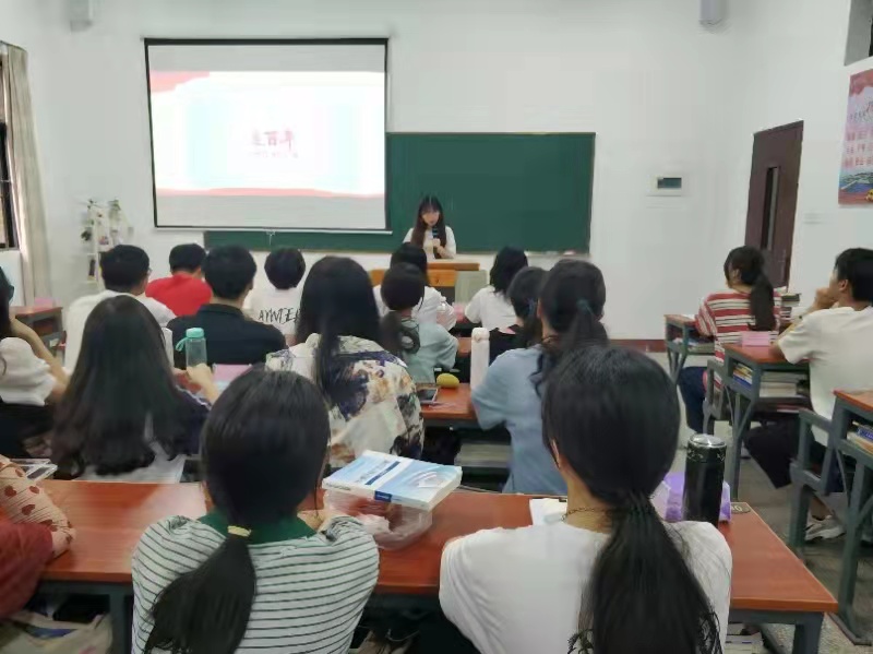 百年征程波澜壮阔,百年初心历久弥坚。为了讴歌百年来在中国共产党的建立丰功伟业,更好地了解党史发展的脉络及其意义。公共管理系学生党支部于 2021 年 6月 28日在祥贤楼106教室开展“庆祝中国共产党建党100周年”主题党课分享活动。