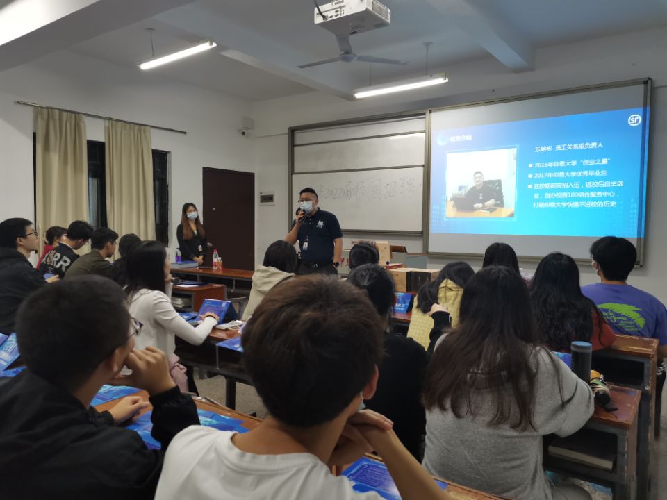 为搭建物流管理系学生与企业的桥梁,提供与企业面对面的交流机会,提前了解企业要求,正视自身优势与不足。2021年11月4日晚上七点,顺丰速运有限公司于仰恩大学第二教学区共和楼203进行校园宣讲会和校招推广。