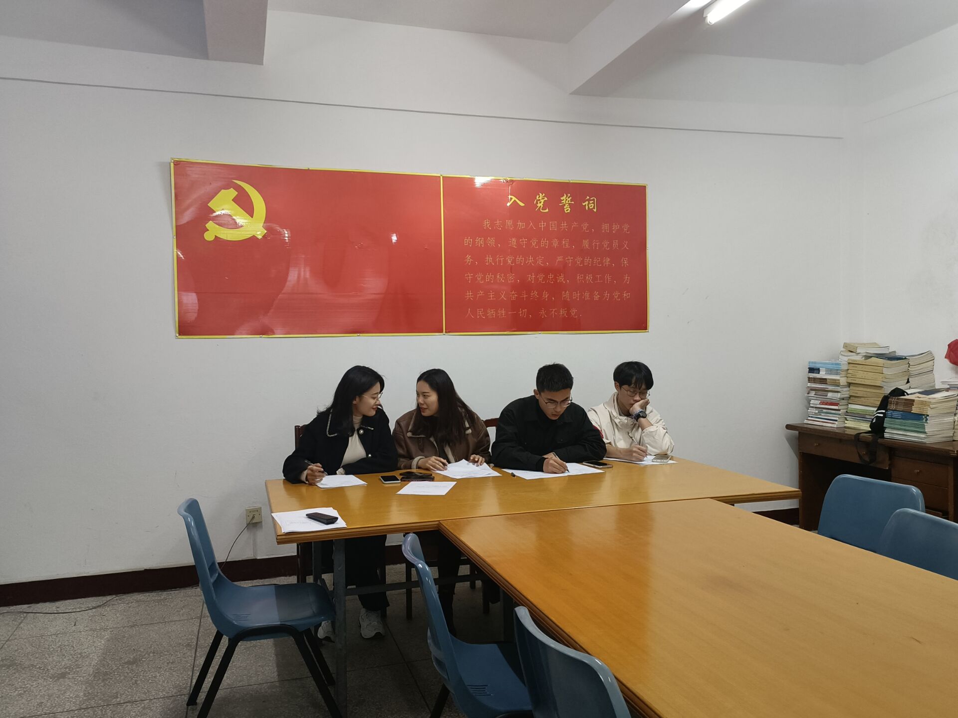 为庆祝建团100周年,引导广大团员青年学团史、强信念、践使命、跟党走,传承红色基因,勇担青春使命。3月8日晚,天天摸天天操于曼谷楼206开展了“百年团史青春说”讲红色故事演讲比赛院赛,天天摸天天操团委书记叶丽香老师、辅导员曾上洪老师、冯瀚霄老师和洪晓徽老师出席并担任本次比赛的评委。