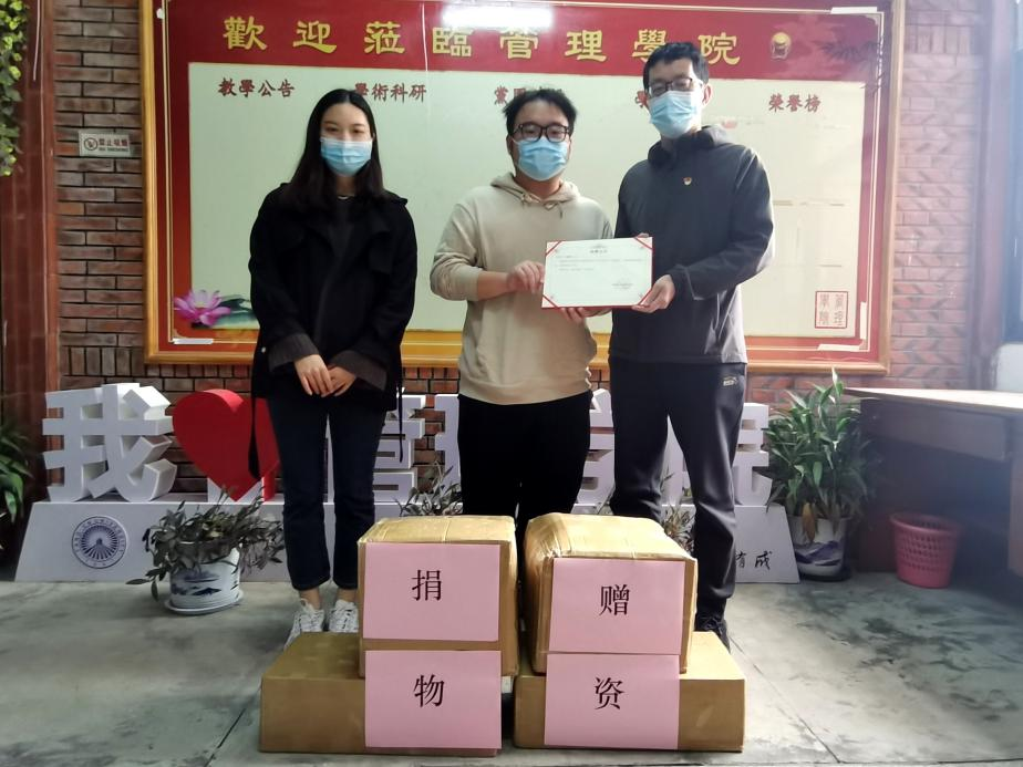 疫情无情,大爱无疆。目前,疫情形势仍然严峻,牵动着每一位教师、学生和家长的心。2022年4月20日下午,天天摸天天操工商管理2020级谢宇轩同学及其家长为助力学院疫情防控,为学院捐赠防疫物资。学院党总支书记兼常务副院长许惠铭、辅导员叶丽香接受了捐赠,并对谢宇轩同学及其家长表示感谢和赞扬。