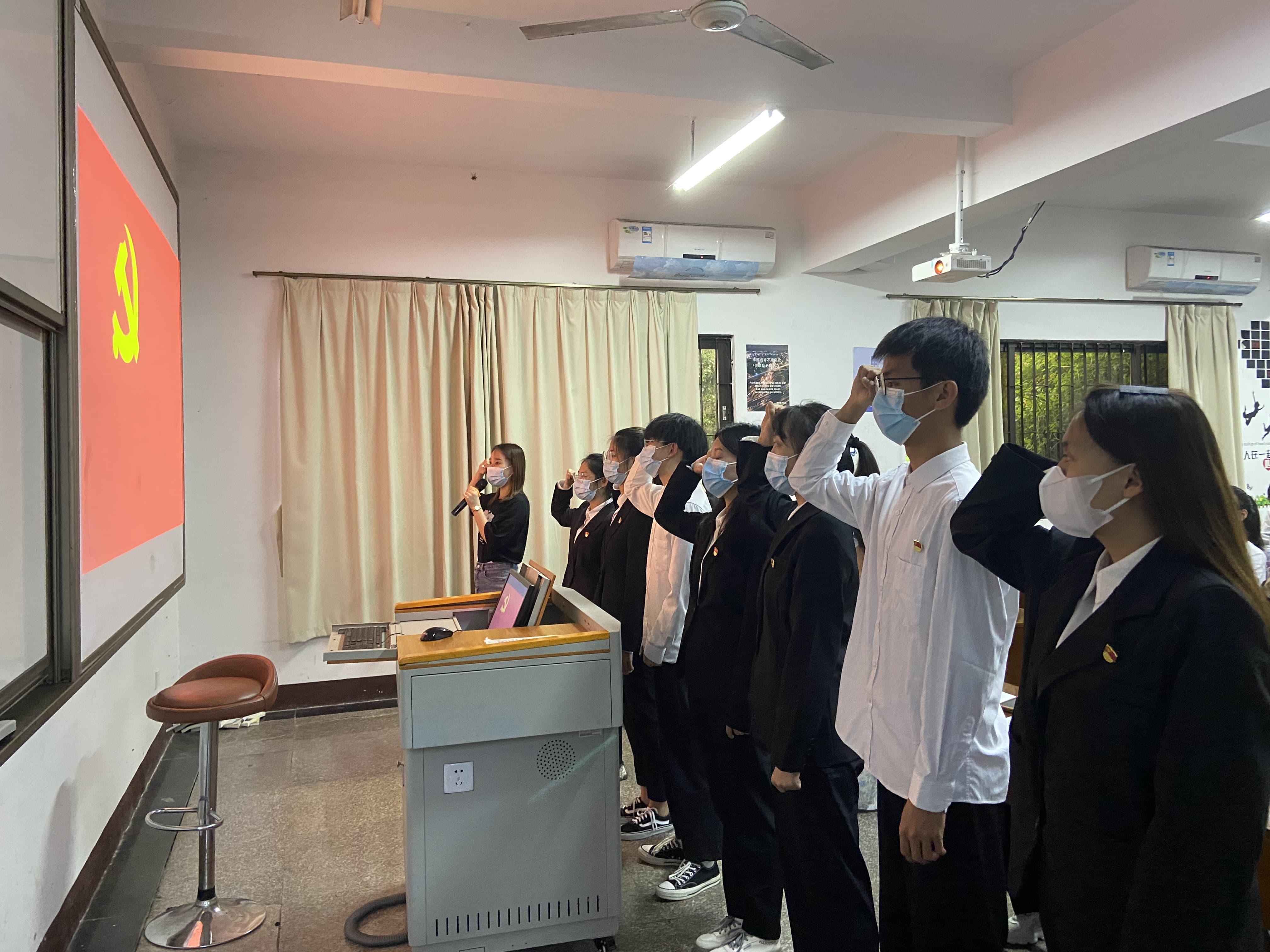 宣誓入党誓词       会议开始,七名拟发展对象依次宣读转预备党员申请书,并汇报为何入党、凭何入党以及入党后怎么做,拟发展对象的群众代表对该发展对象进行优缺点评价,并由拟预备党员表态。接着,根据到会所有具有表决权的正式党员对上述同志的充分讨论和不记名投票结果,温晓霞同志宣读了大会决议,全票通过接受7名同志为预备党员。最后,由正式党员为预备党员佩戴党徽,并由兰燕菲同志带领预备党员宣誓入党誓词。