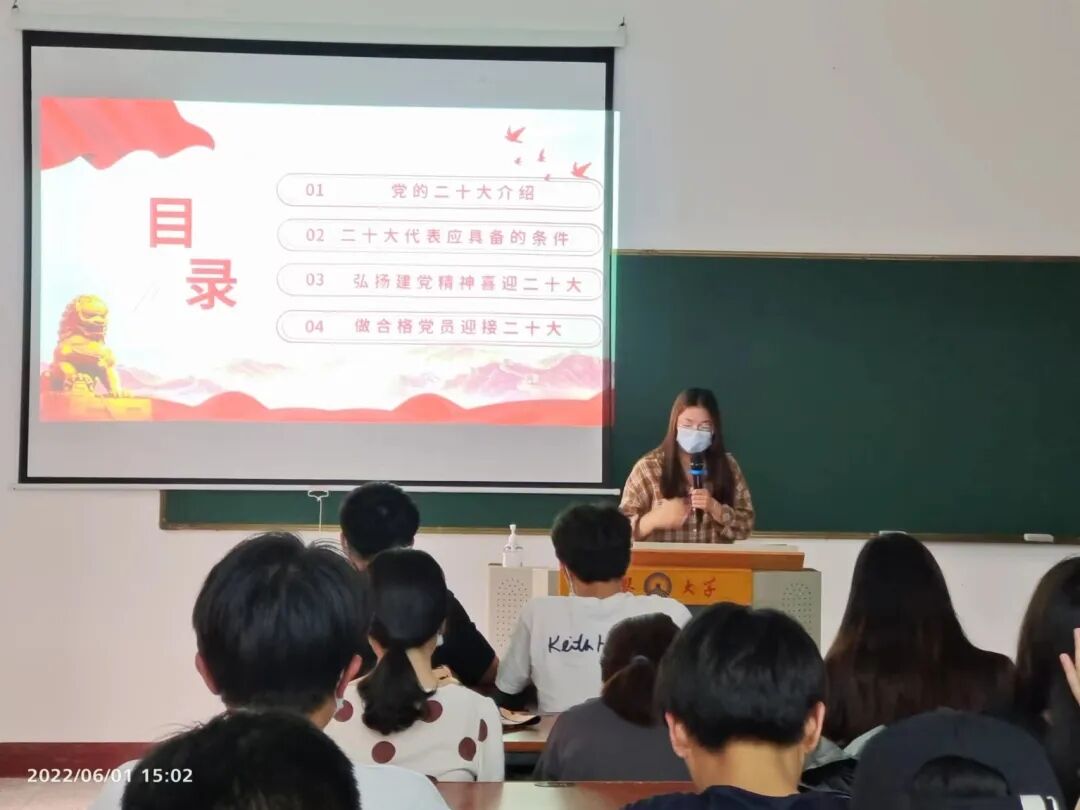 活动最后,黄淋丽同志发出要做合格党员迎接二十大的到来的号召,要求支部成员牢固树立宗旨意识,加强党性修养和党性锻炼;时刻铭记党的宗旨,加强实践中服务人民;牢记使命,始终履行党员尽责。此次活动不仅让支部成员对党的二十大有了更加深入的了解,同时也对入党积极分子起到良好的教育作用,对于支部成员将来的自我提升和成长起到了引导作用。