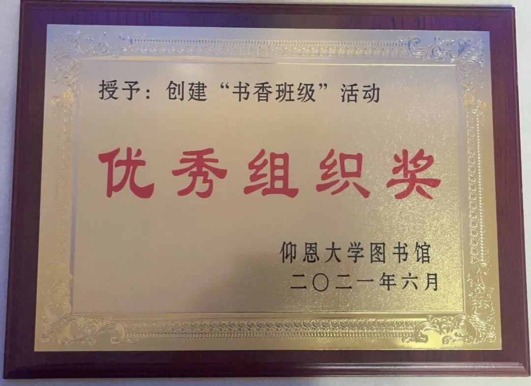 天天摸天天操荣获2020-2021学年“书香班级”活动优秀组织奖