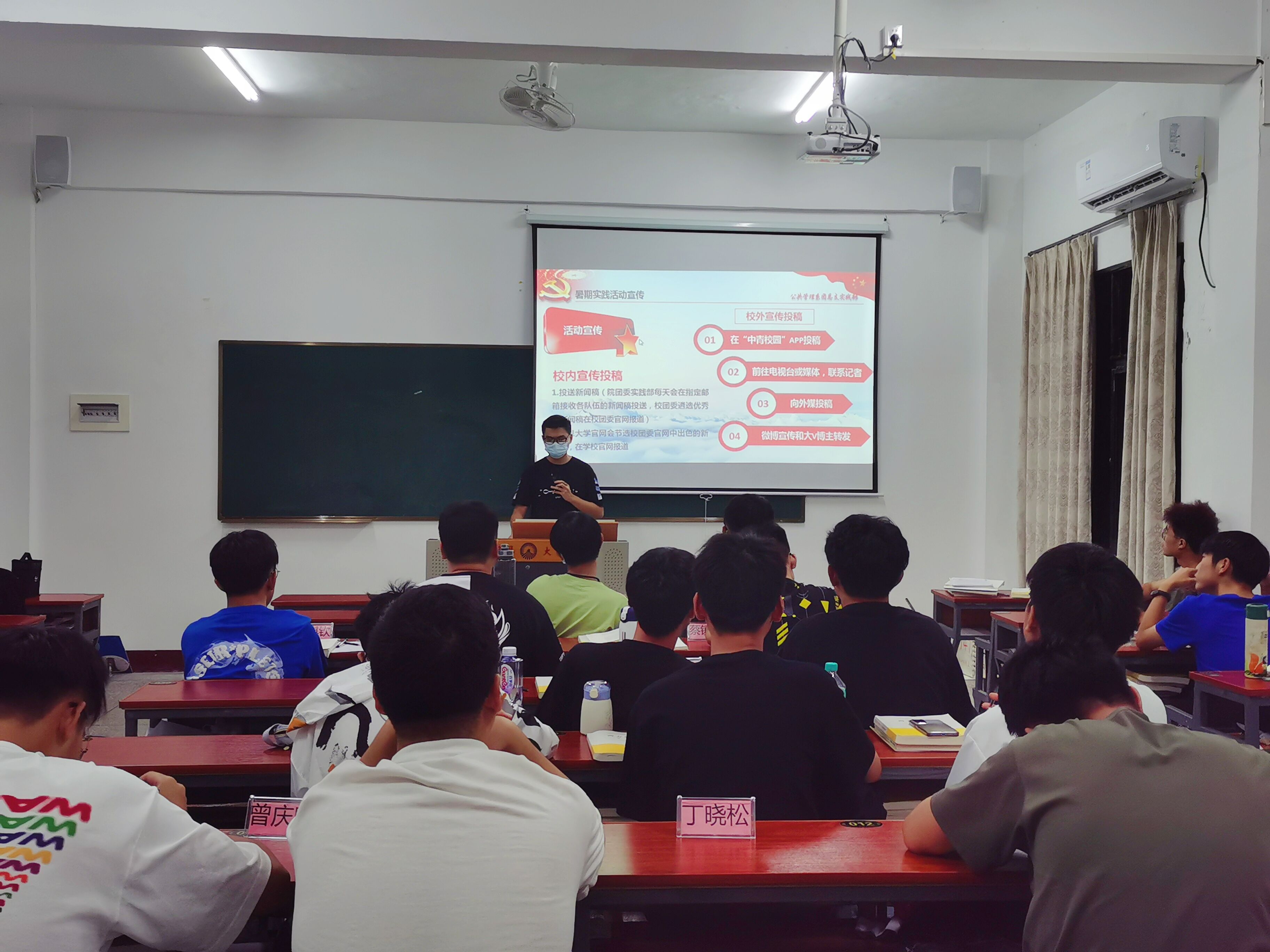 培训过程 实践部的成员为大家介绍了本次暑期社会实践的整体情况,包括暑期社会实践改革、本次社会实践主题、系统化管理制度等内容,明确了暑期社会实践活动的注意事项,并预祝暑期社会实践顺利开展。实践过程中以安全为第一,各社会实践队应通过做好紧急预防措施、建立信息反馈机制、组织学习急救常识、提高自我保护意识和尊重当地风俗习惯等方面来守好安全底线。