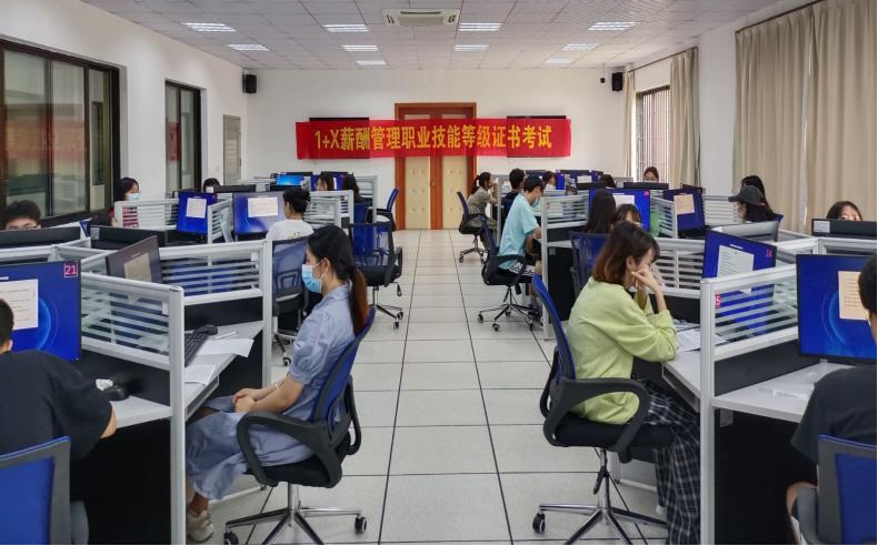1+X薪酬管理职业技能等级证书考试是基于我国人力资本战略发展需要以及国家收入分配制度改革的背景下,致力于培养复合型、创新型、技能型薪酬管理职业技能人才。其考核项目包括专业知识和实际操作两部分,专业知识考试和操作实务考试合格标准为单卷分数均大于等于60分,且两卷成绩同时合格的考生可以获得薪酬管理相应等级职业技能等级证书。考试期间,考生认真作答,自觉遵守考试纪律。主考官、监考教师、考务人员等相关工作人员认真履行职责,全程巡考监督,考场秩序井然。