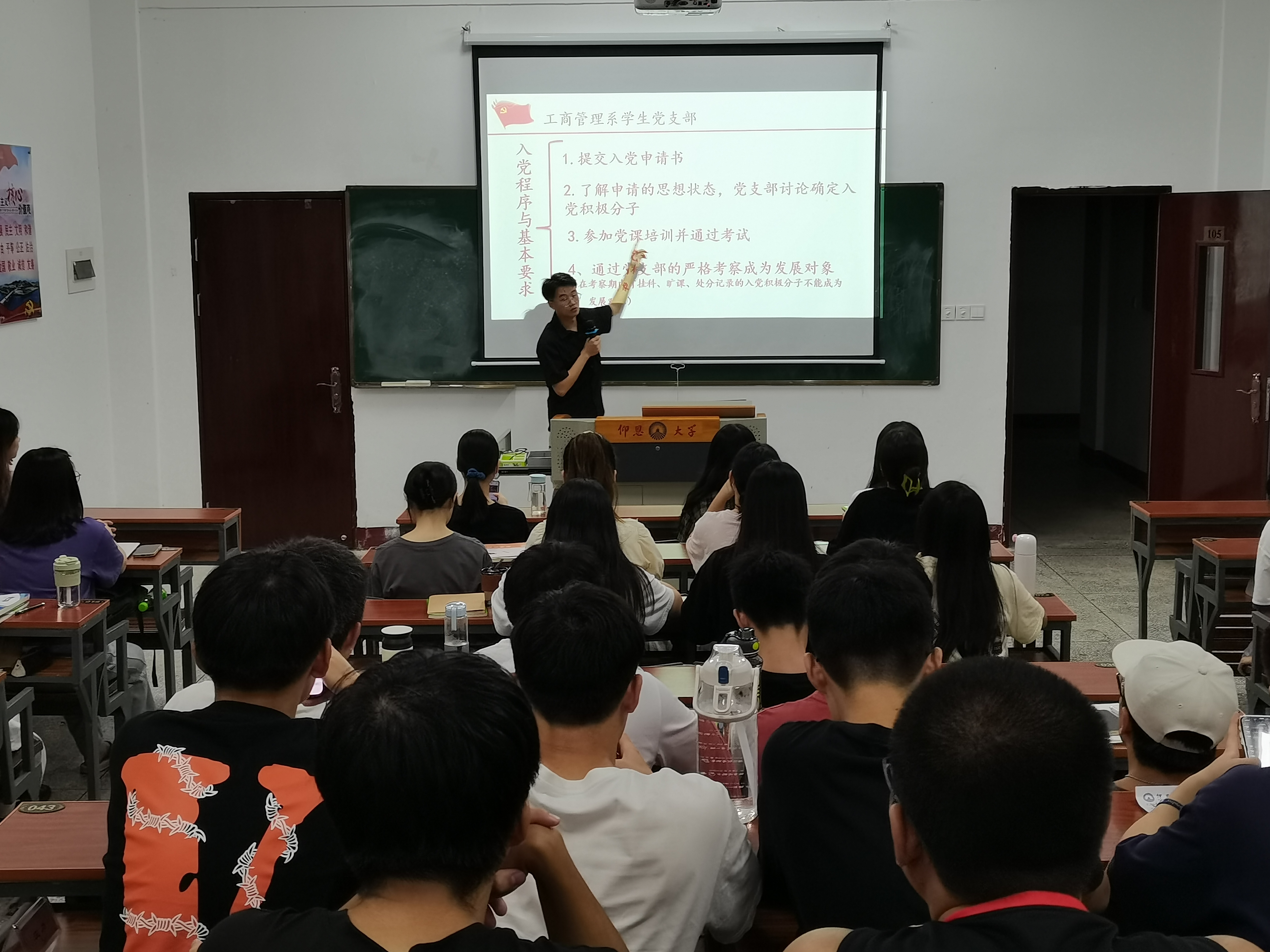 支部成员发言 会议上,张建华、马慧林、陈俊霖、陈鸿、陈锦隆五位支部成员通过PPT形式,分别从中国共产党的重要性、党员要求、入党流程和如何书写入党申请书、思想汇报等方面进行了详细的介绍。让新生们深入了解了党的基本知识,树立了正确的入党动机。