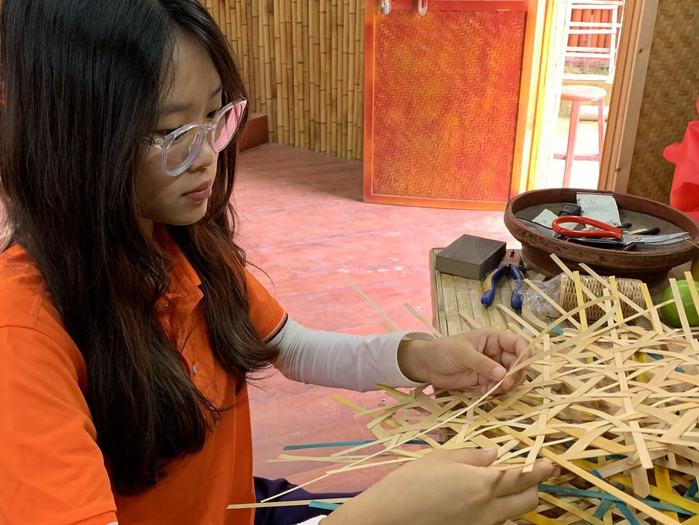 竹编作为我国的非遗之一,富含着中华民族劳动人民辛勤劳作的结晶。队员们走进山内寨村,探寻非遗竹编文化,领略其朴实而又绚烂的风采。实践过程中,传承人向队员们展示了一挑一压,将竹条篾片紧紧编织起来,再经过盘口、装环、锁边等工序,最终形成造型精巧、结构精密的非遗竹编作品。队员们还亲身体验竹编,感受中国文化的审美和心境。