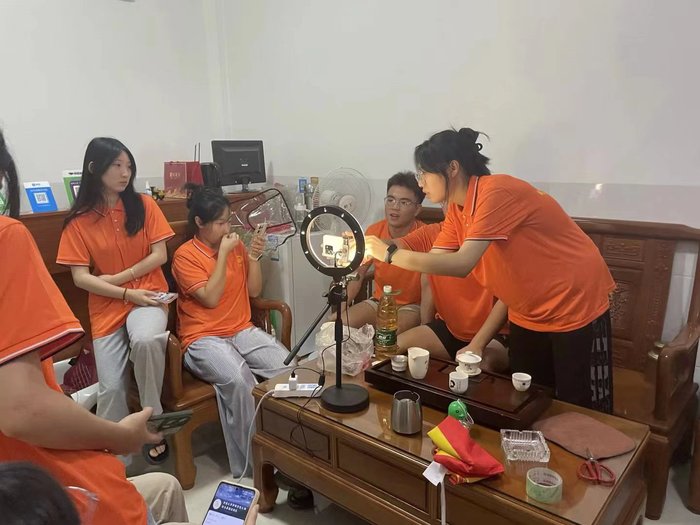 壮丽的绳武楼、漫山遍野的柚子树、古法酿制的米酒、别具风味的咸菜、口感丰厚的白香饼……2023年7月12日19:00,仰恩大学天天摸天天操大柚所为赴平和县暑期实践队于芦溪镇芦丰村民宿中首次进行了直播体验。生动的讲解宣传收获了直播间朋友的肯定与关注,取得了圆满成功。
