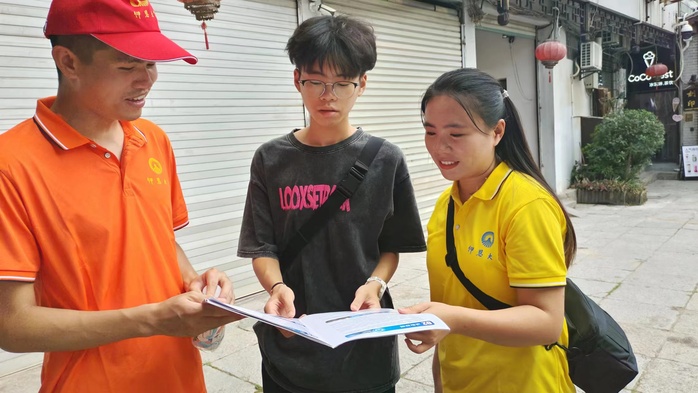 7月12日,在长汀人潮涌动的街道上,队员们穿着印有“仰恩大学”的实践队服,队员们积极地向长汀当地人民进行仰恩大学宣传和介绍2023年仰恩大学的招生具体事项。长汀人民都十分热情地听队员们进行仰恩大学的介绍,也积极地向队员们了解学校。在队员们的努力下,使得当地人民对于仰恩大学有了一定程度地了解。