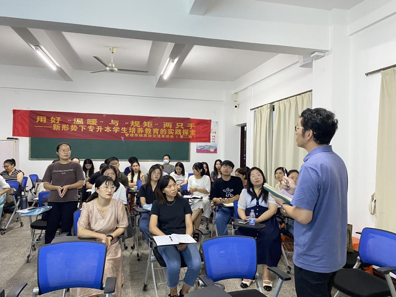 为进一步提高天天摸天天操专升本学生思政工作水平和质量,完善学院全员育人工作格局。9月11日下午,天天摸天天操在吉龙楼208举办第二期学院思政交流茶话会,聚焦学院专升本学生的思想政治教育工作。活动由党总支书记兼常务副院长许惠铭主持,辅导员连景霞、班主任许勇分别进行主题分享,全院班主任、辅导员老师参加活动。