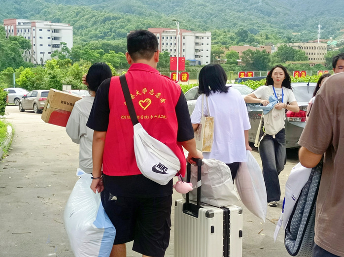 报道结束后,每位学生党员负责将每一名到来的新生送到宿舍。他们头顶烈日,搬运新生的行李,来回奔波,往返于宿舍以及普照大礼堂注册点之间。尽管已经筋疲力尽,但每位同志都坚持奋战在自己的岗位上。全体党员同志配合无间,迎新工作井然有序地进行,达到了预期的效果。