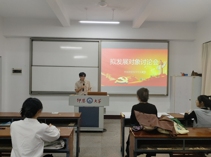 11月10日下午,市场营销系学生党支部于共和楼304开展拟发展对象考察会,本次活动由黄于诚同志主持,支部书记连景霞老师、部分党员及拟发展对象参加。