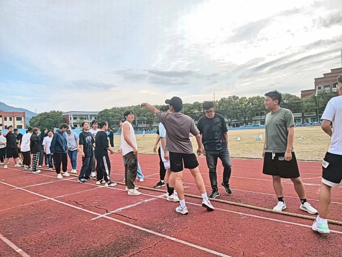 本次比赛采取单淘汰制,每支参赛队伍各20人,采取抽签方式来决定出场顺序,各支队伍依次上场,三局两胜。“起绳,拉紧,预备,开始!”随着裁判员的一声令下,参赛队伍剑拔弩张,参赛队员们各个显示出力拔山兮气盖世的英雄豪迈。在比赛中,工商系的运动员双手紧握长绳,目光坚毅,身体后仰,重心后压,动作一致,口号整齐又响亮。啦啦队的加油助威声在操场上空回荡,天天摸天天操院长许惠铭老师特意利用空暇时间,来为参赛的选手加油鼓劲,在比赛紧张处,他甚至激动地挥舞双臂进行指挥。同学们皆被许院的热烈情绪所感染,现场一片热火朝天。经过激烈的角逐,工商系最终荣获拔河比赛第五名的好成绩。