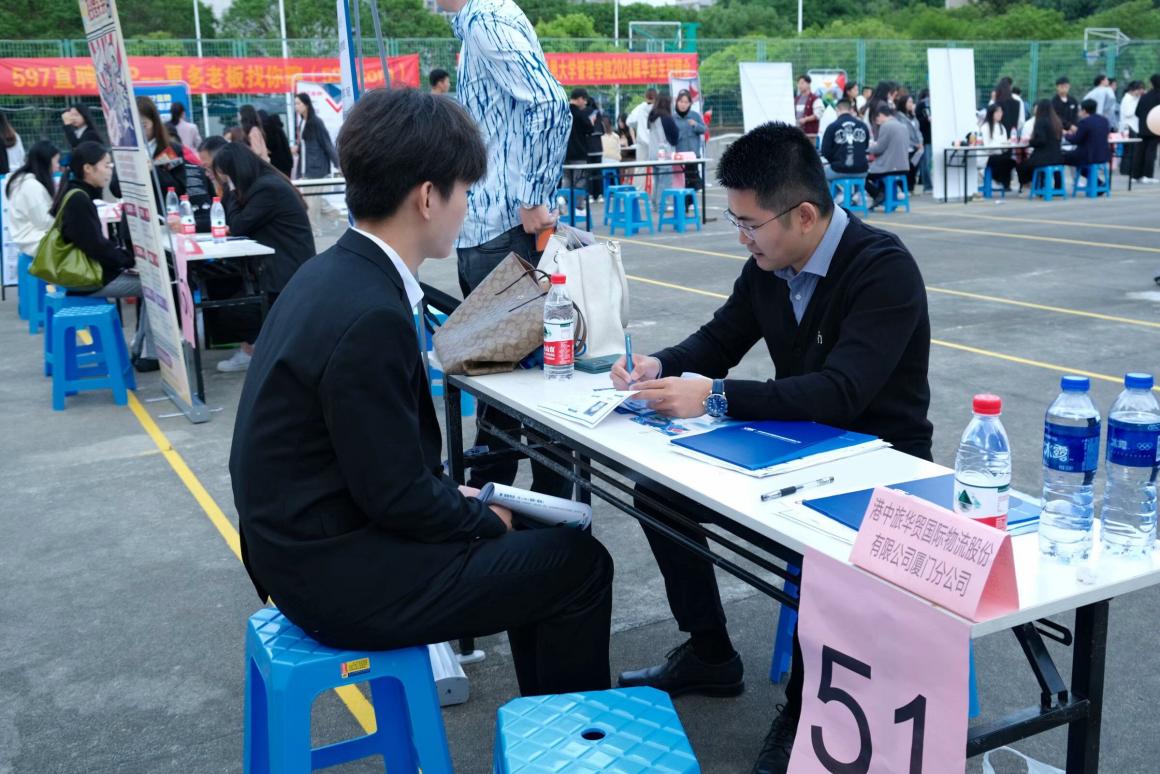本次招聘会吸引福建全力供应链管理有限公司、保利物业服务有限公司、福建亲亲股份有限公司等60余家知名企业入校招聘,提供项目管理、销售管培生、招聘专员、营销策划、物流专员等1470个岗位,岗位需求与管理学院相关专业匹配度高。招聘会现场,毕业生们神采奕奕,手持简历仔细阅读企业的相关介绍和招聘要求,主动与用人单位交流,了解相关信息,积极投递简历。各用人单位也与毕业生们进行双向互动,设立展位、向毕业生介绍公司背景、招聘需求及薪资福利等信息,助力毕业生们更好的寻求自己理想的工作。招聘会现场还设置了志愿者服务处、简历问诊处等,为毕业生提供入伍、留学、考研、简历制作与指导等咨询与帮助。