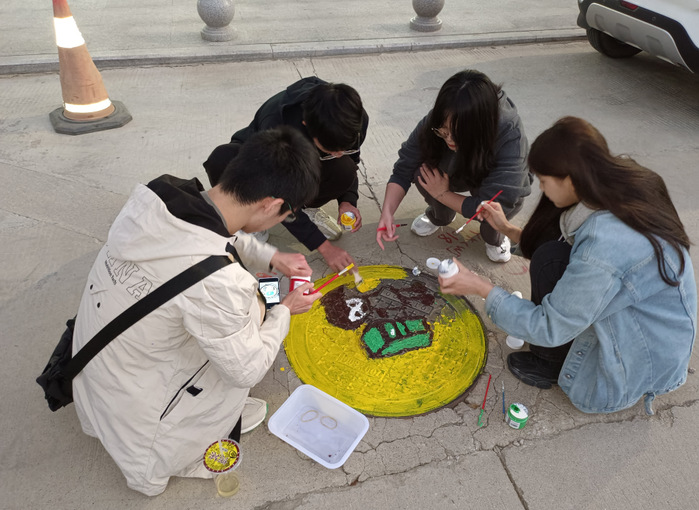 活动前期,将所有党员进行分组,各组根据井盖的形状大小,并结合交通安全知识、文明用语、社会主义核心价值观等元素进行创作设计。活动中,同志们从样图设计、草图选择,再到勾勒图案、填充颜色等各个环节都一丝不苟、认真对待。党员们互相学习、互相帮助,共同完成了10个井盖绘画作品,不仅增添了街道活力,也让井盖成为承载文化,传播文明的载体。色彩靓丽、风趣活泼的井盖涂鸦绘画让平时不起眼的井盖变得引人注目,得到了不少过路居民的驻足和赞赏,为促进当地文明建设做出了贡献。