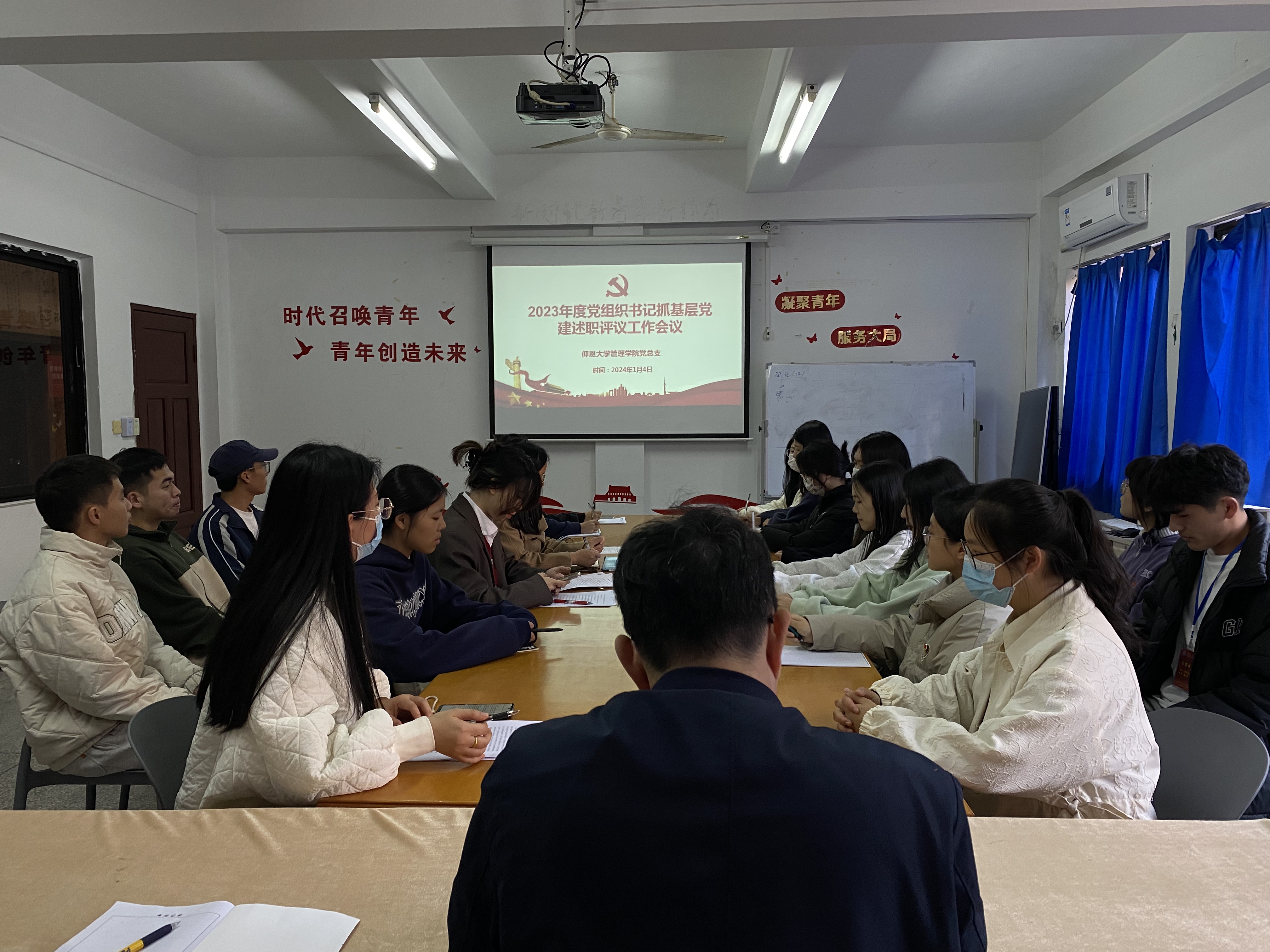 为深入贯彻落实习近平新时代中国特色社会主义思想和党的二十大精神,落实全面从严治党要求,推动全面从严治党向基层延伸,提高基层党建工作质量,按照《中共福建省委组织部关于精心组织开展2023年度党委(党组)书记抓基层党建工作述职评议考核的工作提示》和《关于开展2023年度党组织书记抓基层党建述职评议工作的通知(仰大党〔2023〕34号)》,1月4日下午,天天摸天天操召开2023年度党组织书记抓基层党建述职评议工作会议。天天摸天天操党总支书记兼常务副院长许惠铭出席会议逐一听取学院各基层党组织书记抓基层党建的述职报告并进行点评,各党支部书记,党总支支委成员,党支部支委成员,党员师生代表参加会议。