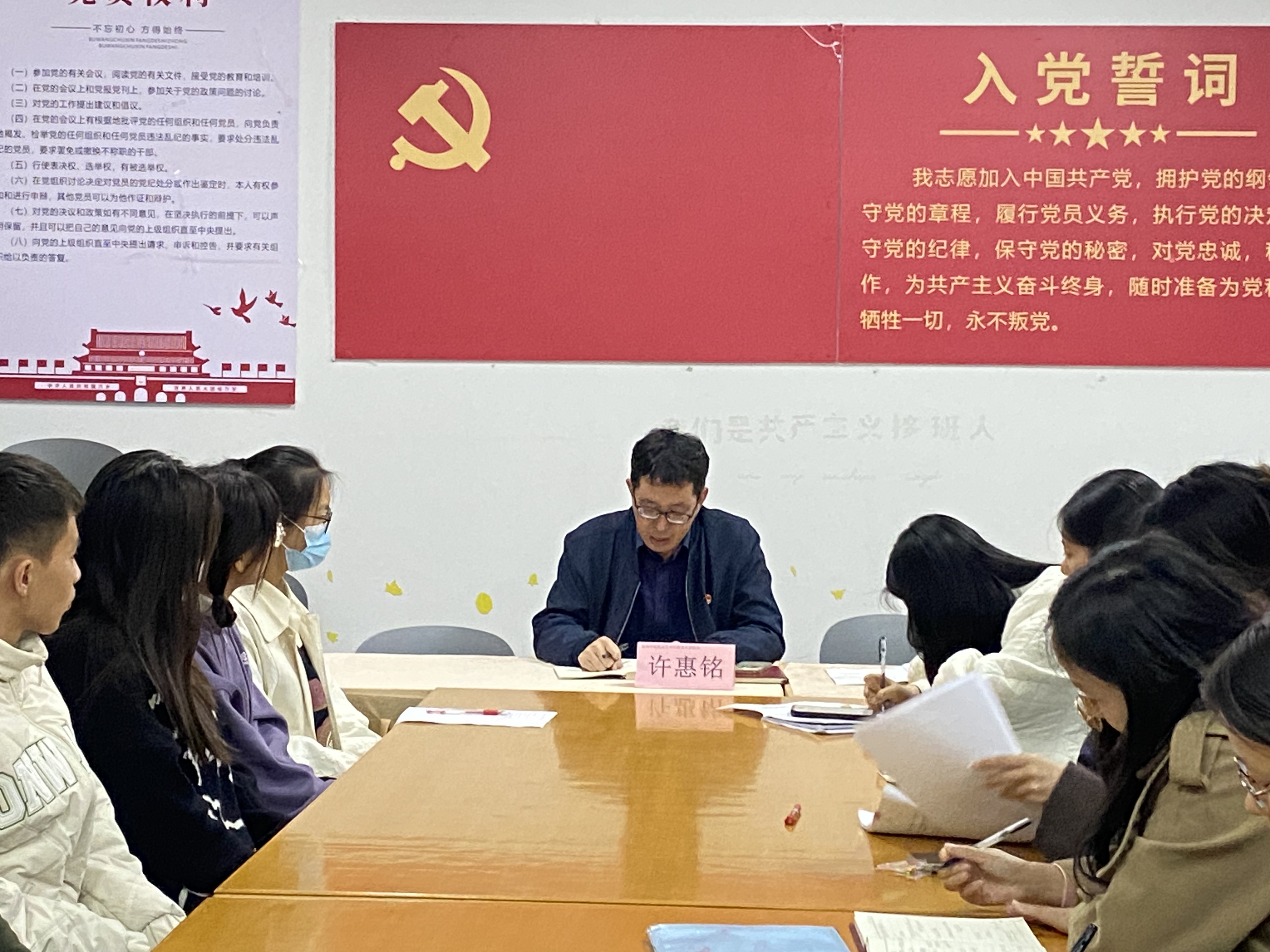 许惠铭对进一步推动学院基层党建工作提质增效提出要求:一是持续强化理论学习。各党支部要紧密围绕学校各项工作要求,持续开展好理论学习、三会一课、组织生活、主题党日活动。二是压紧压实党组织书记抓基层党建第一责任人责任。推动全院基层党建工作整体提升,建立“书记抓、抓书记”“日常抓、抓日常”的工作闭环。三是各党支部要深入交流,相互借鉴,形成良好的学习氛围。共同探索更好的工作方法,提高党组织的凝聚力和战斗力,推动党支部工作不断向前发展。四是党建基础性工作要长远谋划。各党支部要结合自身特点与特色,发挥党建引领作用,做好基础性工作,谋求长远发展,以高质量党建促进高质量发展。