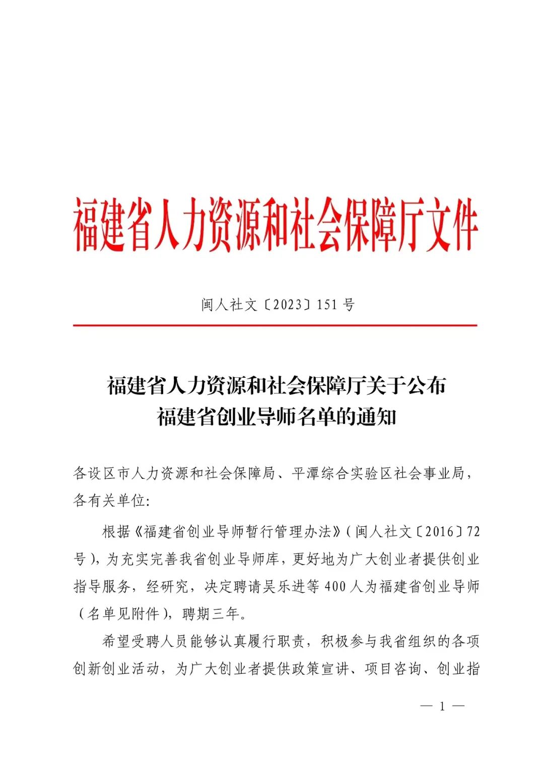 据悉,福建省创业导师评聘工作由福建省人力资源和社会保障厅负责,三年一聘期,迄今已经聘任两轮。本次是第三轮评聘,面向全省聘任新一批创业导师,旨在为进一步加强创业导师队伍建设,充实完善福建省创业导师库。本次获选的人员是来自全省各地企业、大中专院校、创业培训机构、创业贷款担保机构、创业服务机构、创业孵化机构、行业协会及其他相关单位的优秀创业导师,他们经验丰富、业务扎实,将更好地为广大创业人员提供咨询、指导服务。