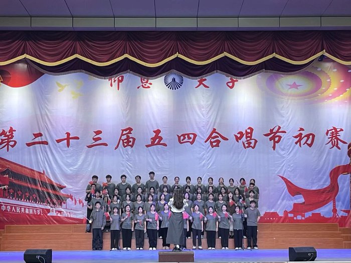 每个参赛班级着装统一,以饱满的姿态、嘹亮的歌声,唱响时代的主旋律,展现出当代大学生的青春风采。明朗激昂的旋律在普照大礼堂里久久萦绕,雷鸣般的掌声是对所有合唱的同学们的赞美,亦是对百年前用生命践行五四精神的无数热血青年的敬仰。