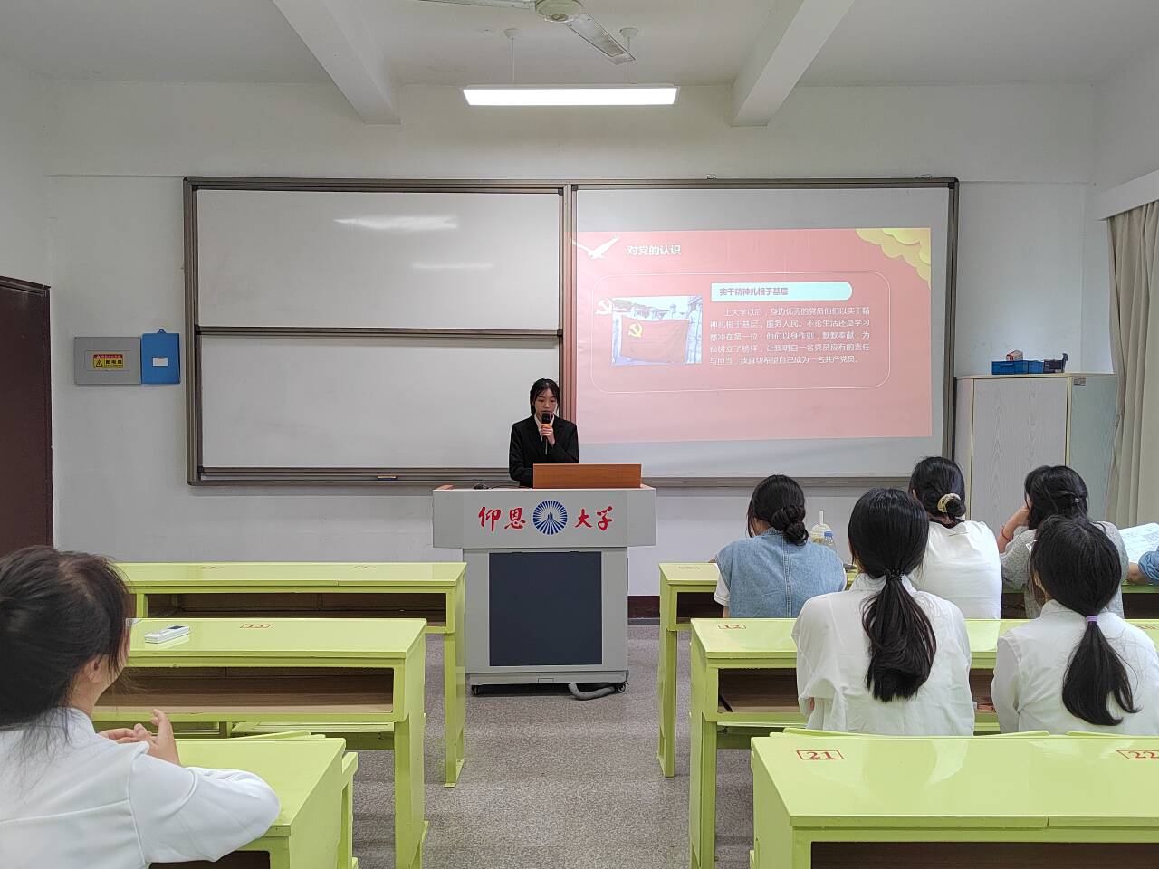 会上,各入党积极分子踔厉奋发,满怀热情地汇报了自己的入党动机、凭何入党、入党后怎么做等方面。每位入党积极分子都表达了对党的深厚感情和对党的事业的无限忠诚与向往。紧接着,支部党员们围绕工作、生活、学习等方面展开了细致而深入的提问,各位入党积极分子也认真作答,虚心接受党员同志们的意见和建议。会议最后,连景霞老师进行总结,她表示:每位入党积极分子在答辩中都有优势和不足,今后需要加强学习和巩固。无论结果如何,要保持积极的心态和进取的精神,不断追求卓越,以党员的标准严格要求自己,时刻做好先锋模范作用。